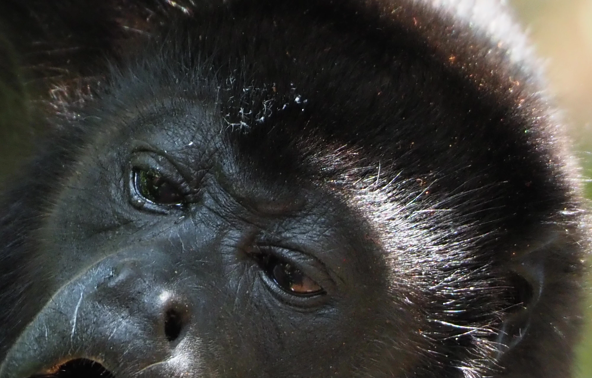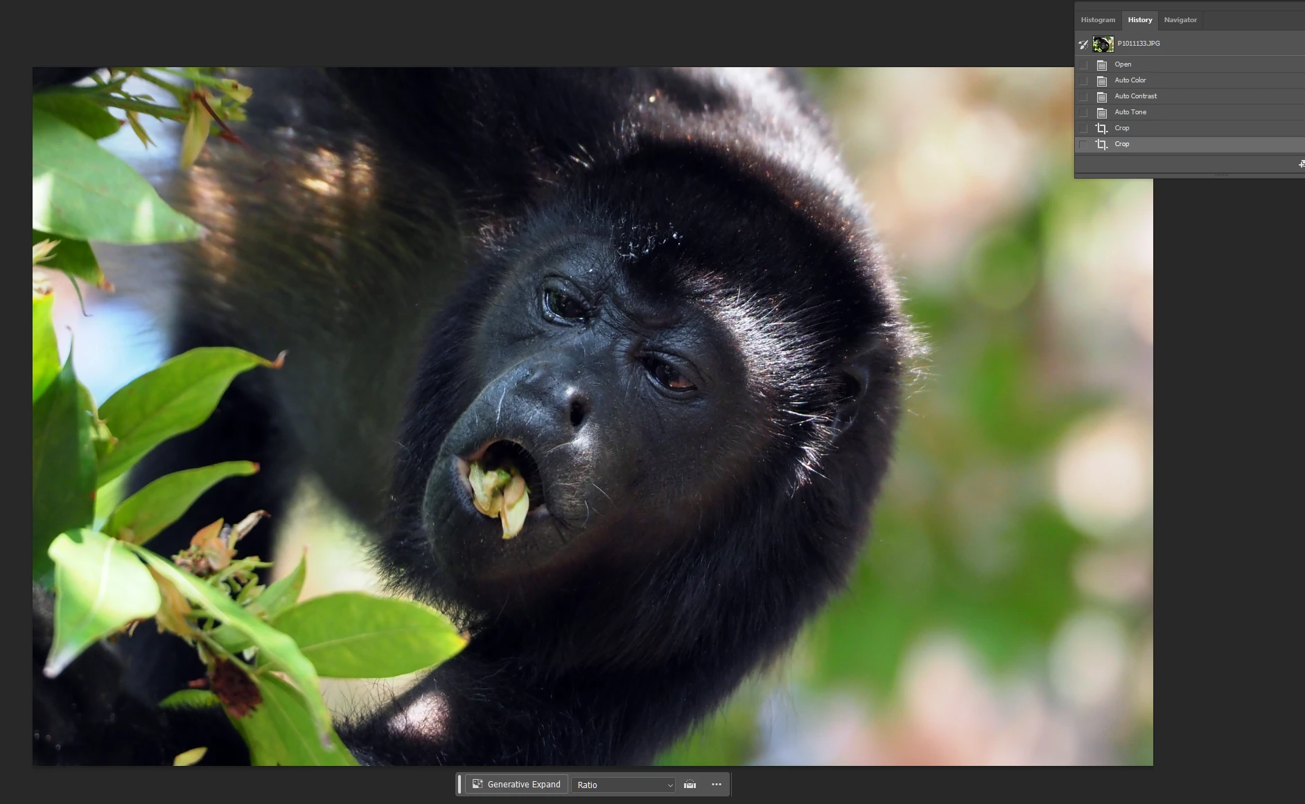 So, I suggest crop down to the monkey's face and focus on that. This way you can also crop out the bright areas.