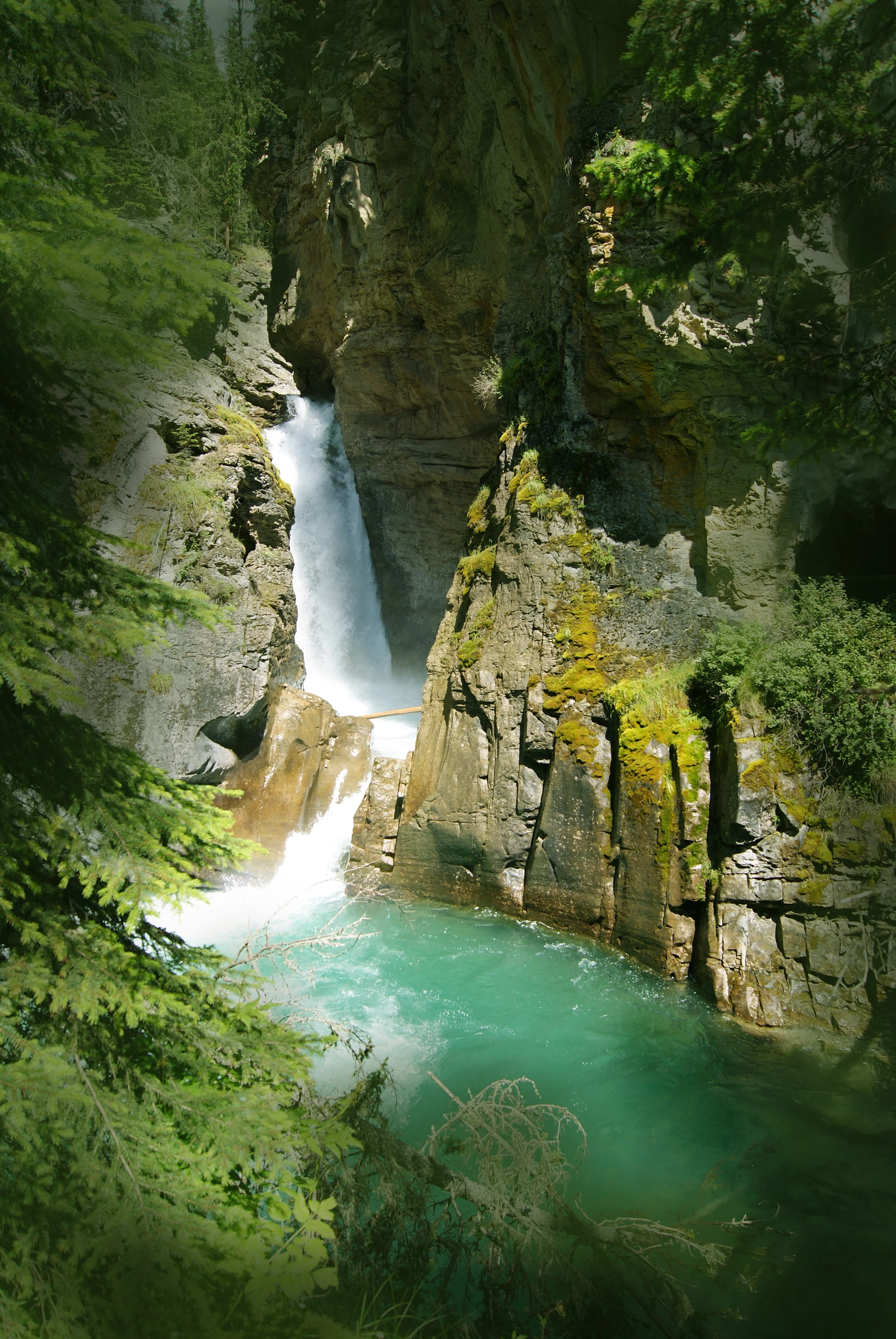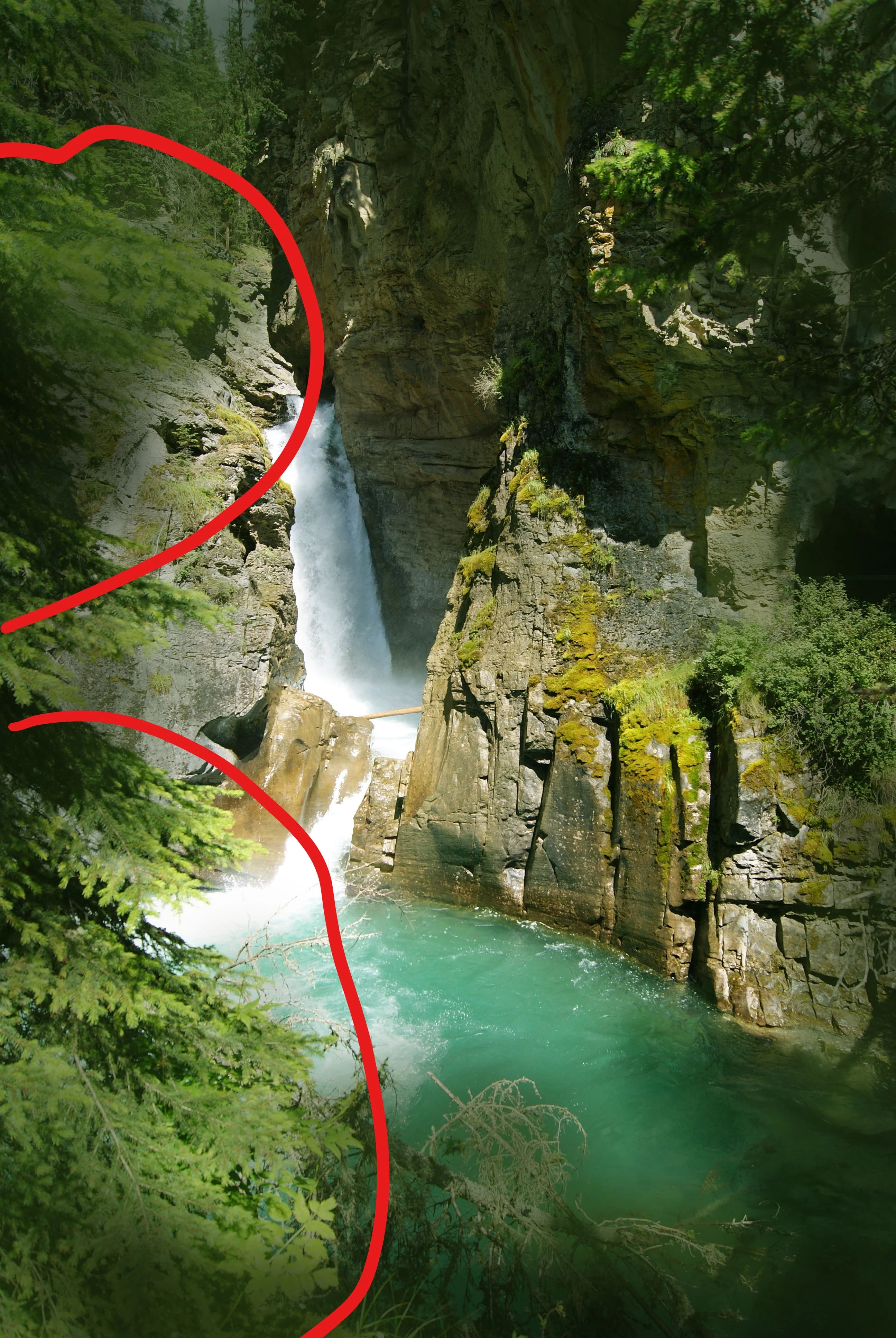 Your image, however is missing detail. There is a kind of flattening that I haven't seen until now. A contrast boost would enhance the worse, but as there is absolutly no structure at the bottom of the waterfall, that does not safe the image.