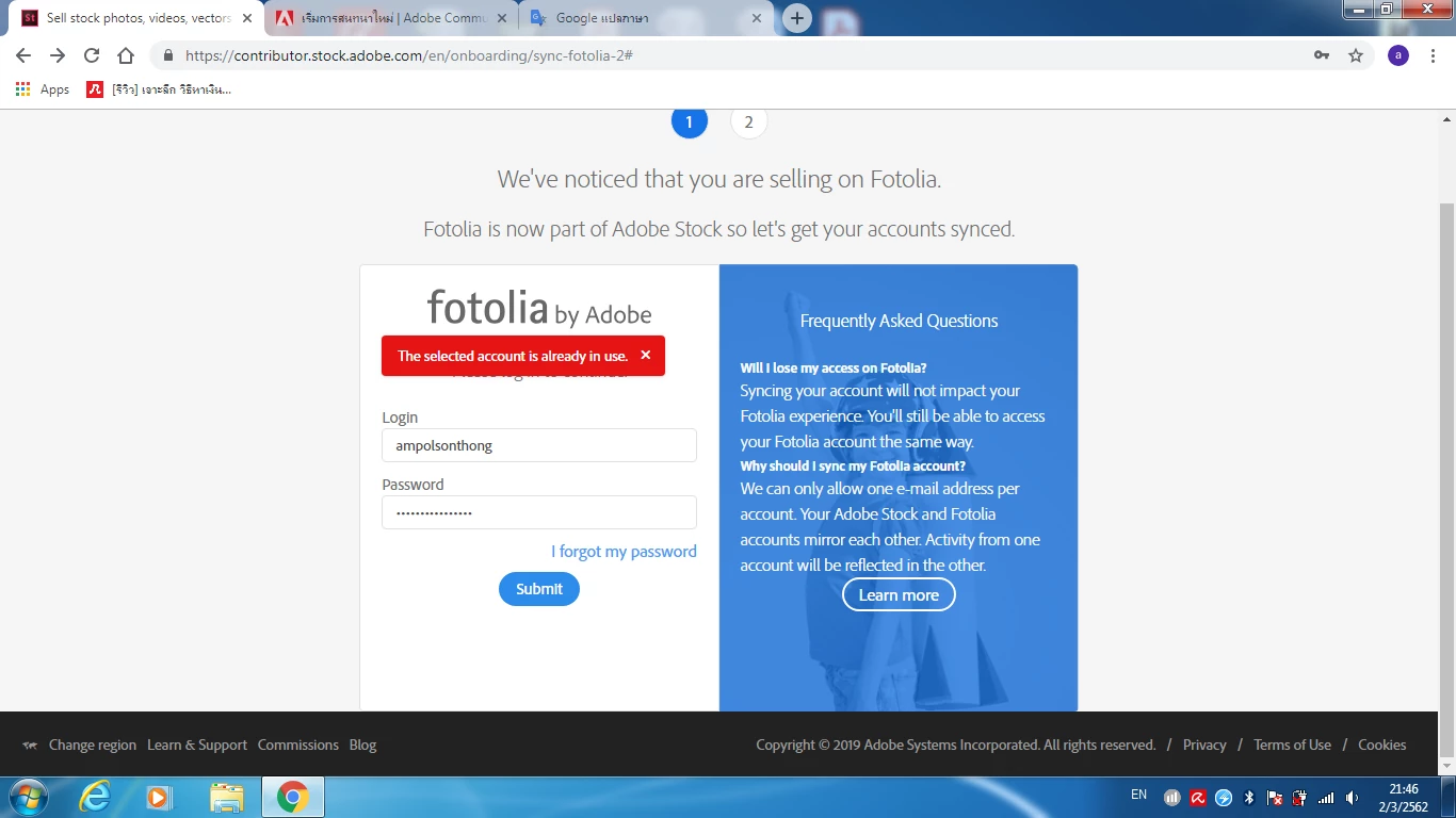 I can't log in to the image seller. What do I have to do.