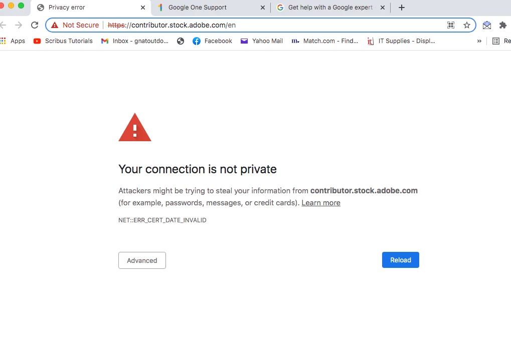 I can't log into my contrubutor account. I am getting a privacy error message when I do. It says my connection is not secure. I can log into other accoutns without any issues. No one I've contacted has been able to help. Is there another link I can use or is there another way I can actually talk to someone at Adobe? Thanks.