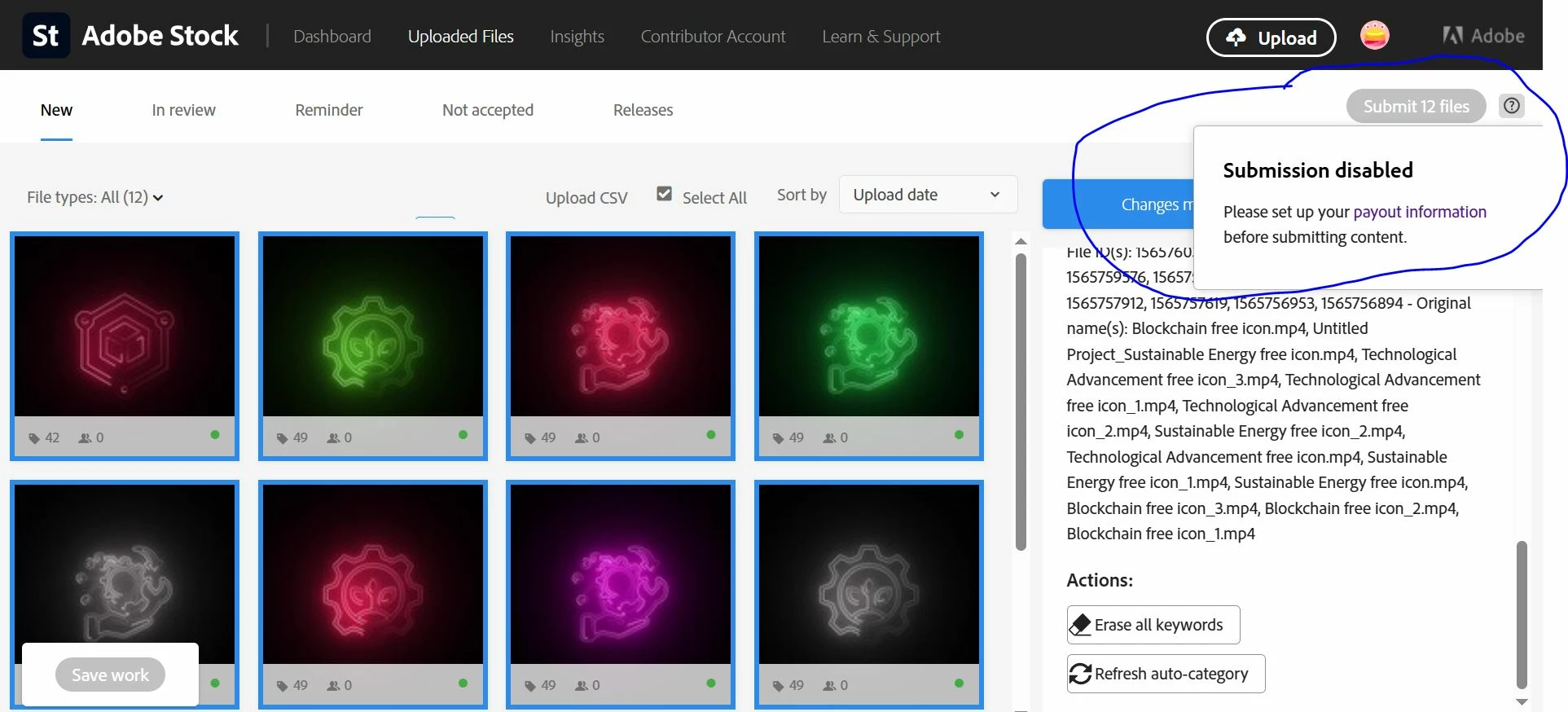 You can see on this screenshot what is my problem ? I marked my problem but I can't solve this problem cause I joined today and I created contributor account today. I uploaded 12 files and I fill up all the information but I can't submit any videos. There are swowing a problem that I marked on this screenshot. Please reply everybody .