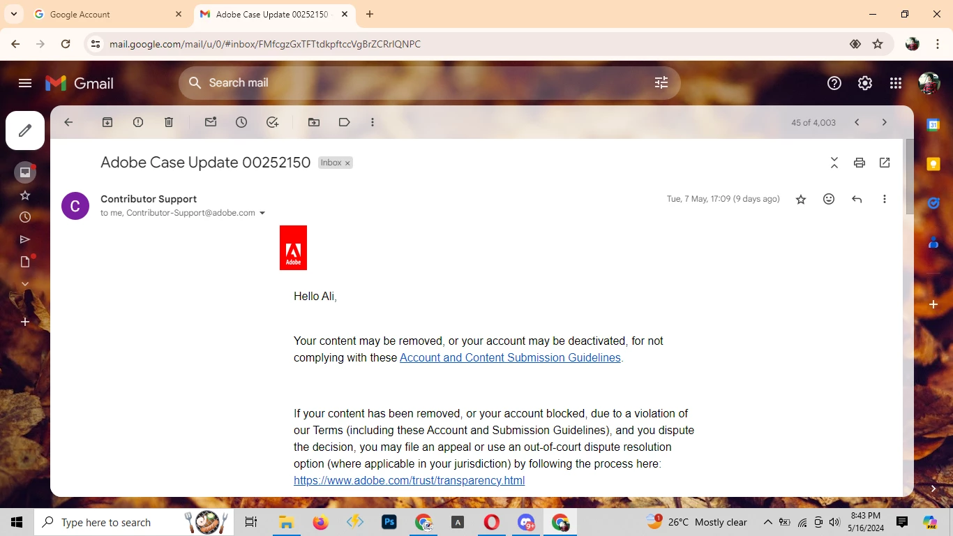 I'm contributor on adobe stock. My account de-activted from month. I am very worried about the account. I am incapable of working I am very sorry about my account And if I have committed any mistake unknowingly, I have tried to talk to the help center several times and have also sent mails several times but I am not getting any response. Please take action on this and my issue should be resolved.