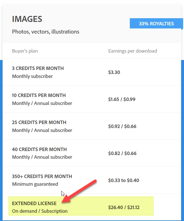 If you sell an image under a Standard License, you will be paid that amount, but if you sell it under a higher level license, such as an Extended License, you will be paid a higher amount.