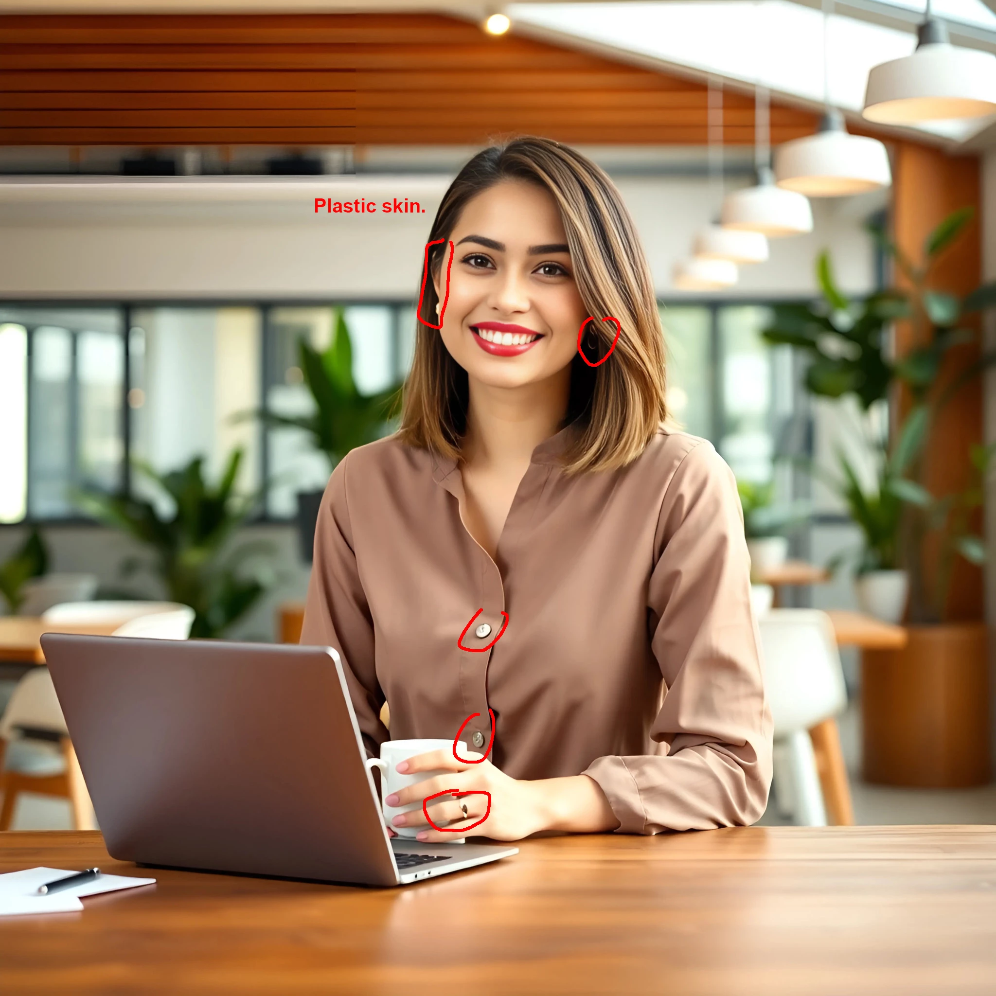 Moderators are always going to zoom in and look at hands first, then facial features, then other anatomy, then the surroundings. Most of the people in these images have unrealistically soft skin, and don't seem to have any pupils in their eyes.