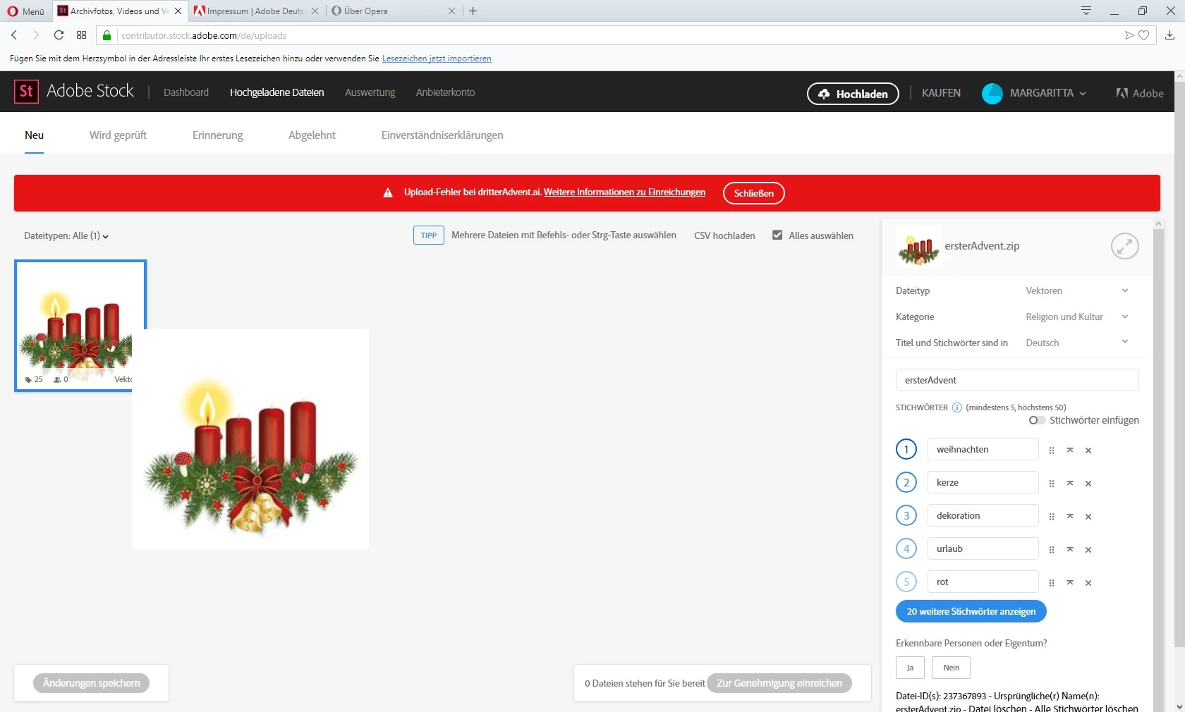 Ich hatte hier im Forum nachgefragt , warum das nicht geht . Hatte auch mit der Technik geschrieben. Bei Fotolia kann ich Vektoren ,AI und Jpg. in Zip gepackt uploaden. Bei Adobe hingegen wird mir auch das Vorschaubild unscharf dargestellt.