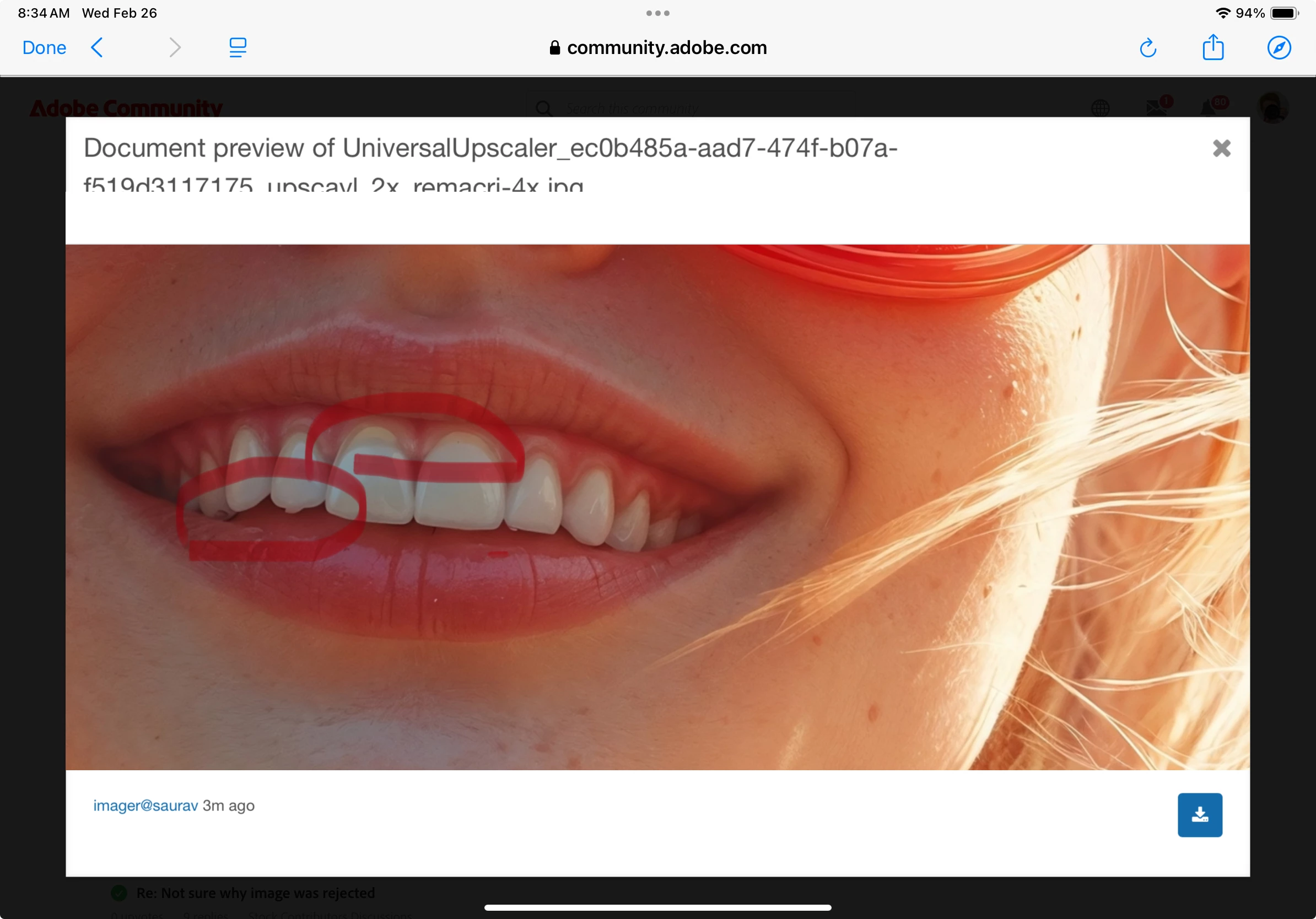 can anyone tell the specific reason , why this image got rejected!! it's an AI image created using midjourney upscaled by leonard ai with universal upscaler(using creativity set to '6') later on upscaled by (UPSCALER) software with Remacri version
