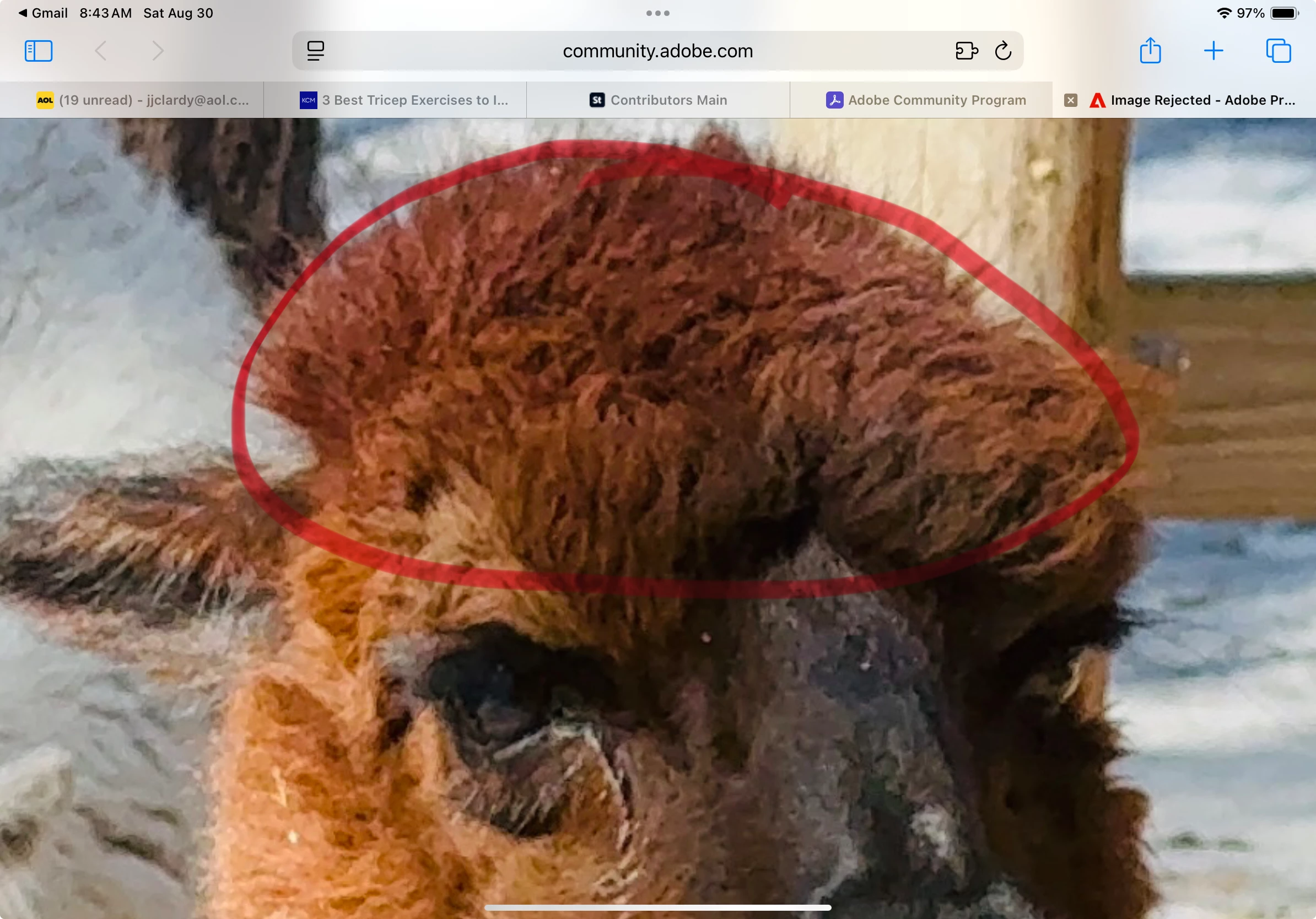 -3 learn to shoot manual. Here your exposure settings are 1/400 sec f 1.7 and you need more depth of field... and if you shot this with a cell phone as I suspect you did, you must shot in raw, if your phone doesn't have that, it is doubful Adobe will accept still photos from a cell phone, unless it's an amazing shot for editorial use. (You are more likely to have good phone videos than photos).