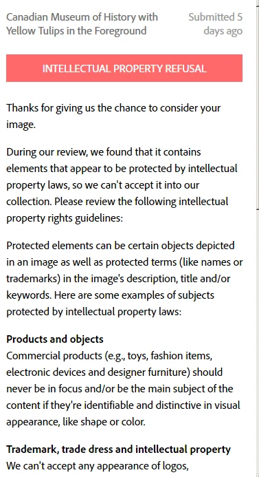 I would like to know why this image was rejected since there are plenty of images from the same museum available on Adobe Stock.
