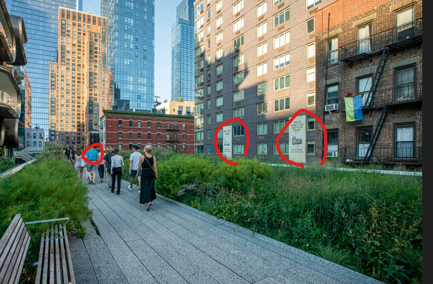 If you look closely, you'll see letters, illustrations, logos, etc. on signs, T-shirts, bags, etc.