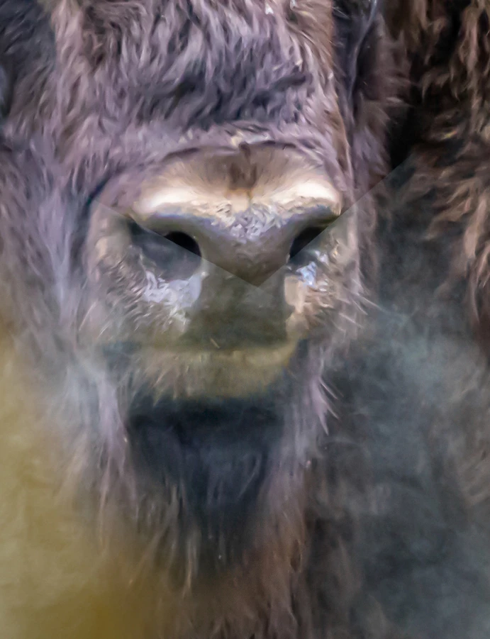 There is an odd triangular line just above the nostrils - did you edit in the steam?