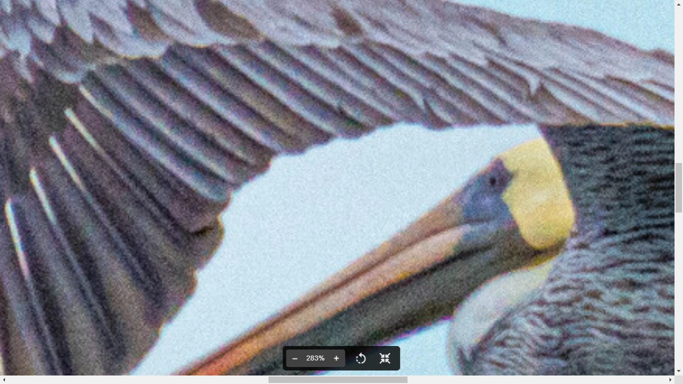If you zoom in to 100% view on the bird photo, you'll see there is noticeable chromatic aberrations, the main subject isn't all the way in focus, and there is noticeable noise. Formthe focus, the depth of field appeared to be too shallow for this shot.