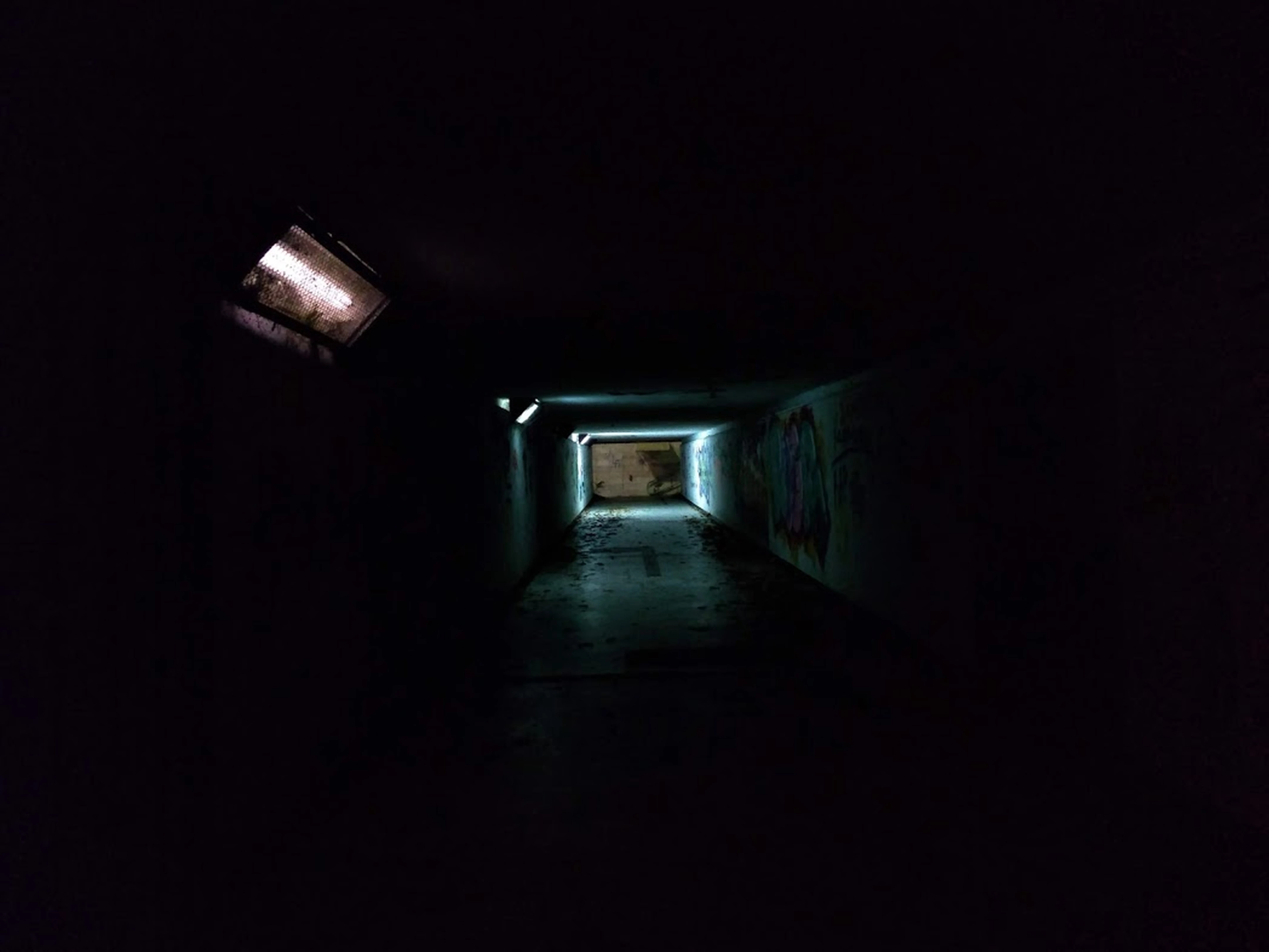 The tunnel is way under exposed. There is too much of a black area where there are no details. If you zoom in on the black area you will notice it is not smooth black. It has some purple mixed in. That is color noise. The black should be black. The end of the tunnel is out of focus. The tunnel perspective is fine.