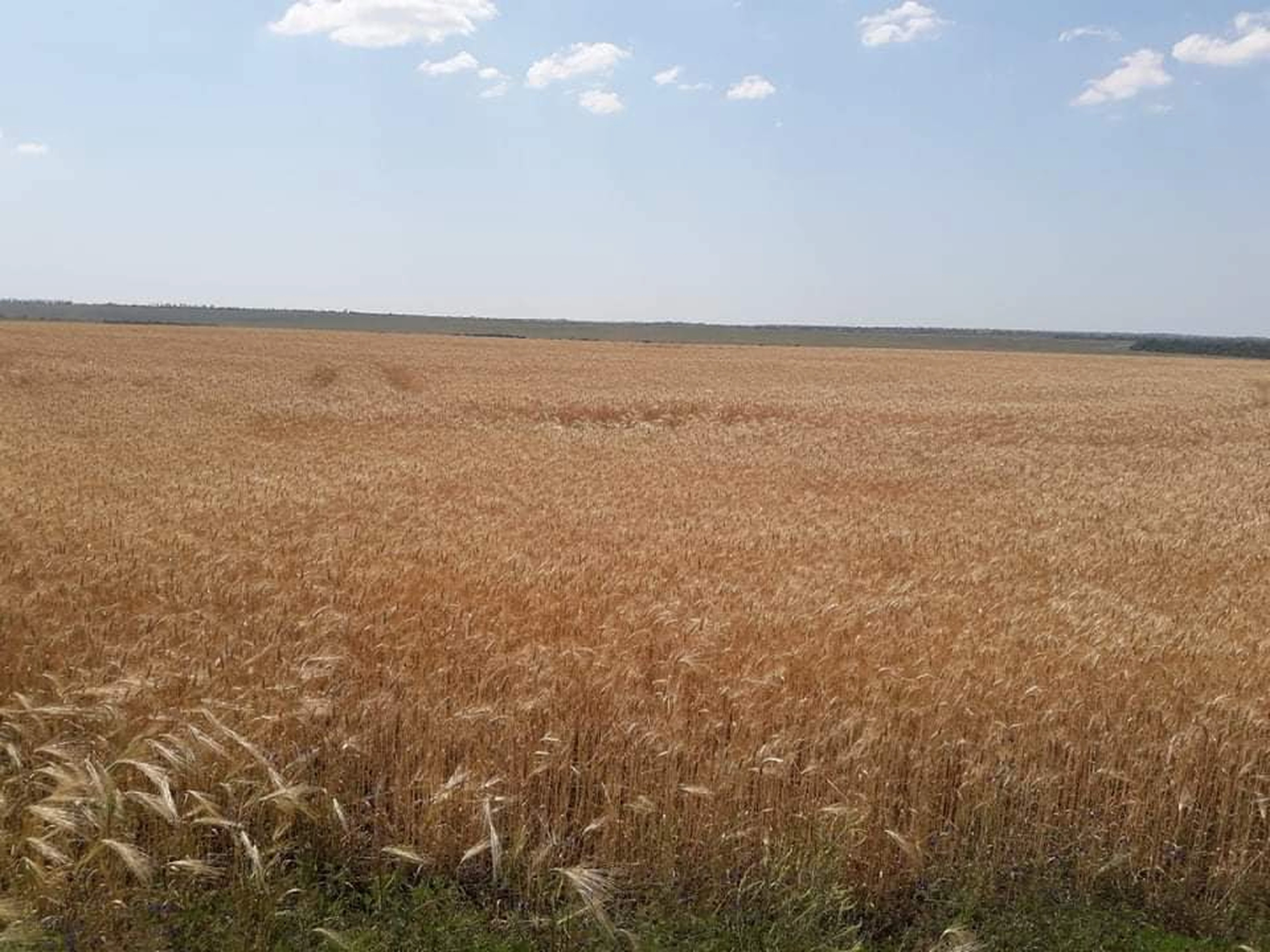 The field is completely out of focus. Judging from the plants the perspective is slightly out. However because there seem to be a slope and the horizon is so close to the edge of the frame. you'd need to use the tool in camera raw that makes both horizontal and vertical corrections.
