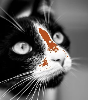 The red area shows burned out whites: