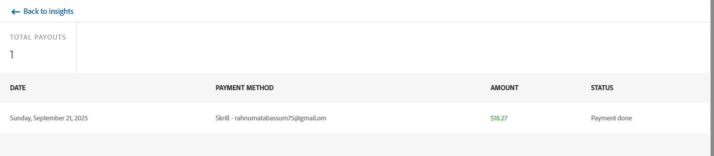 I manage two Adobe Stock contributor accounts under the same details. Both accounts show that payments were processed and marked as “Paid.” However, only one of the payments has been received in my Skrill account. The other payment has not yet arrived, even though it shows as completed in my contributor account.