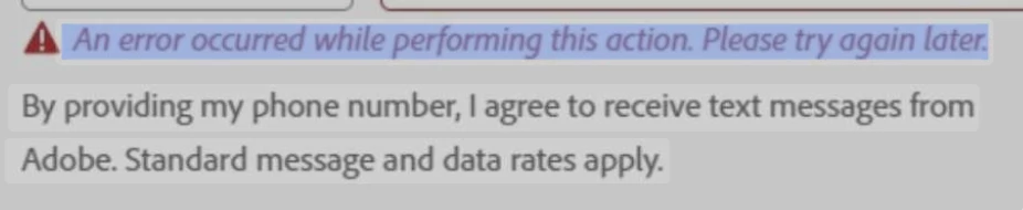 Hi Good Morning adobe stock team. I am new in adobe stock site i want to be a contributor. Thats why i need verify my mobile number. When i input mobile number show is An error occurred while parfoming the action. Please try later.