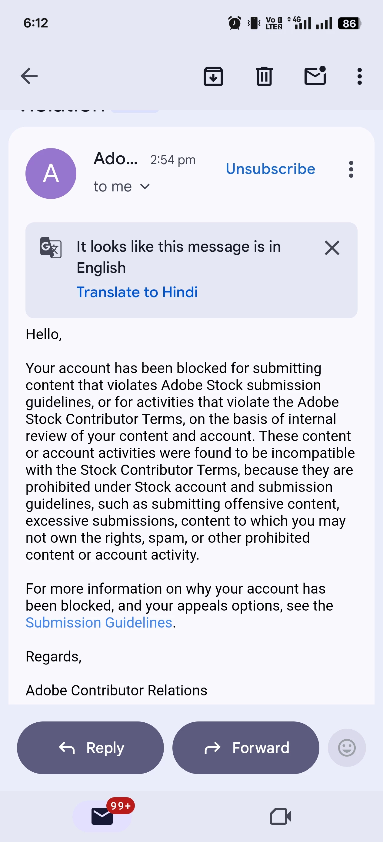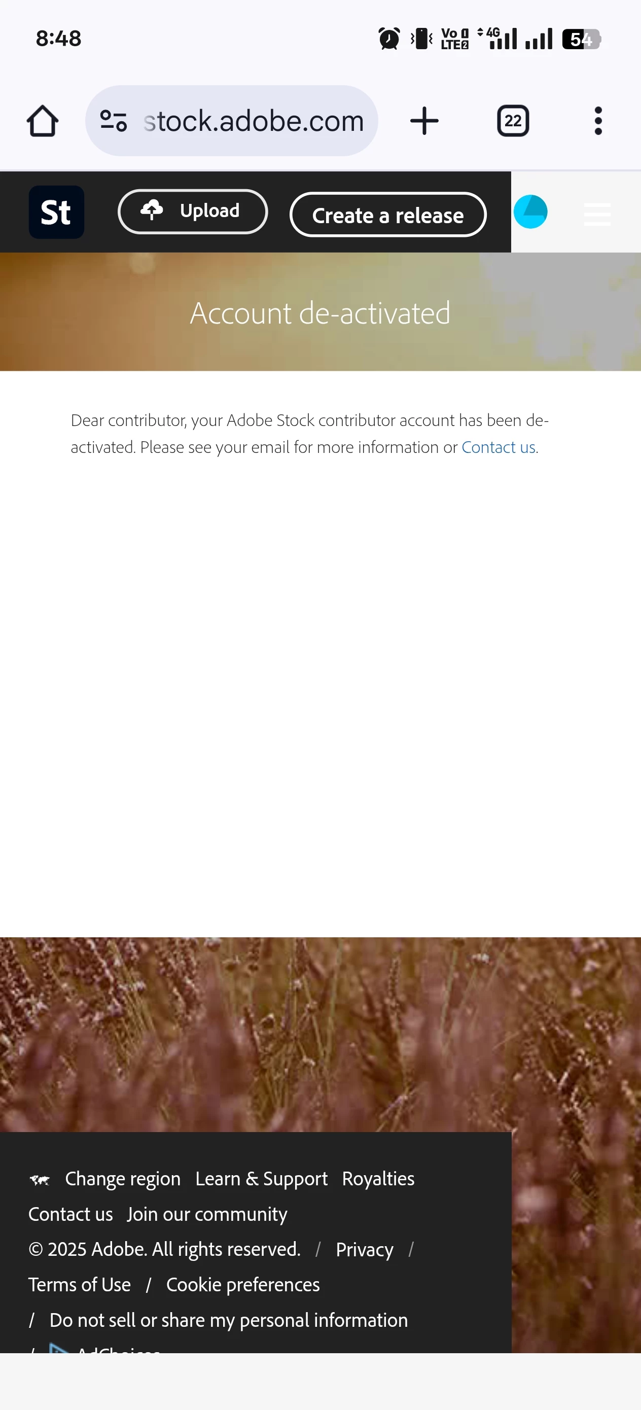 According to the email I received, my account was blocked due to violations of the Adobe Stock submission guidelines or Contributor Terms. However, I would like to clarify that I have not uploaded any content to the platform for over a year. Given this, I am unsure of the reason for the block and would greatly appreciate your assistance in understanding the issue.
