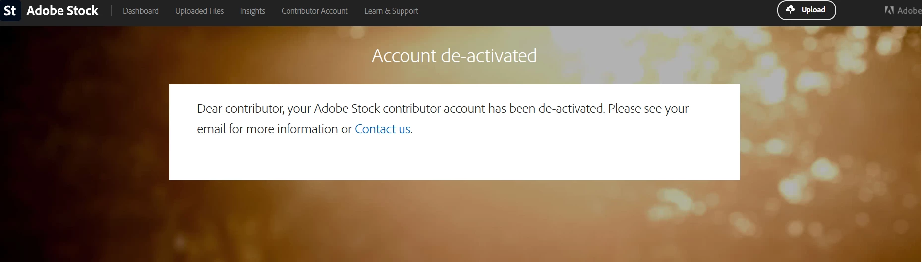 My Adobe Stock contributor account has recently been blocked due to a “Terms Violation” notice, and I am very worried about it.