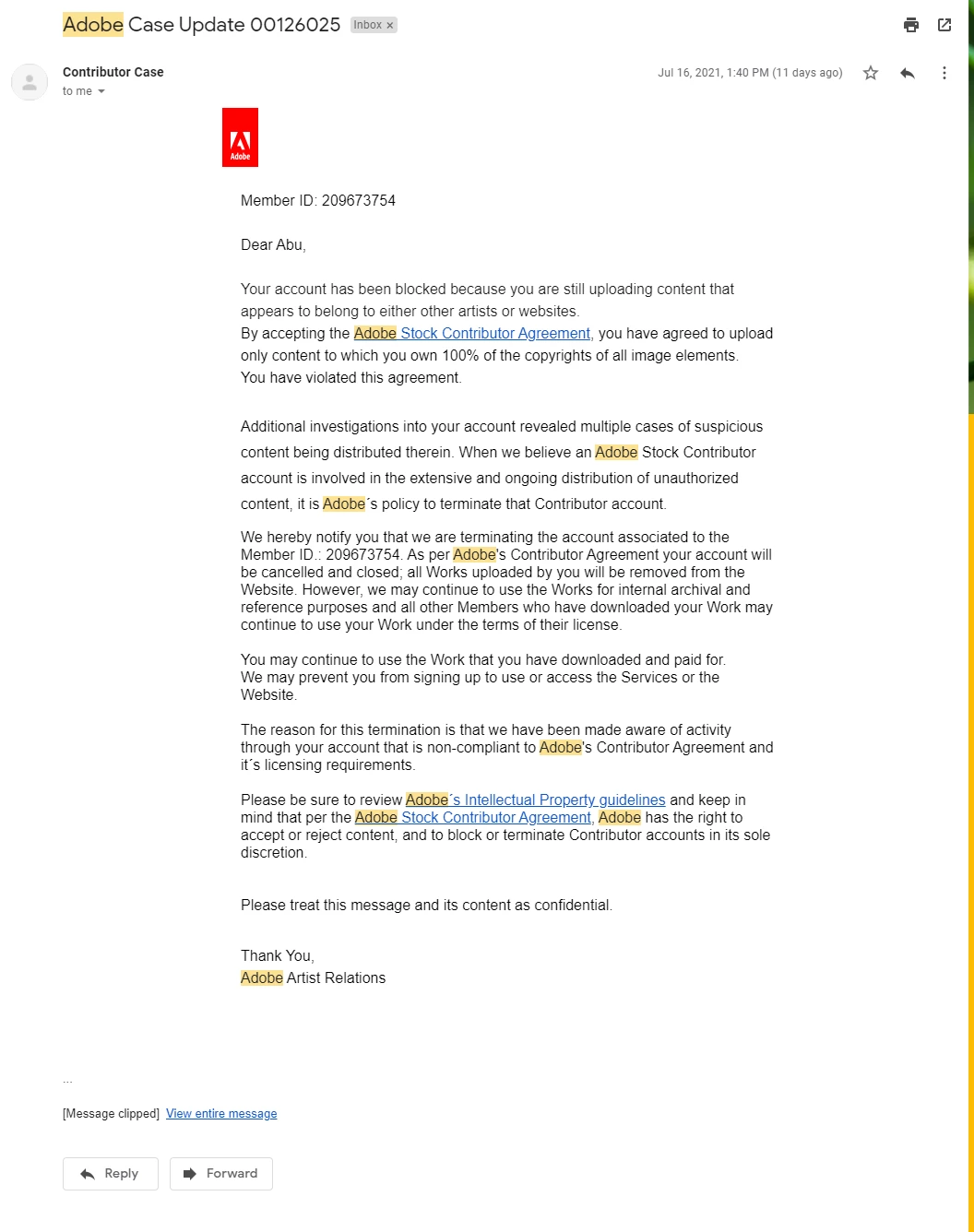 My Contributor Account has been blocked