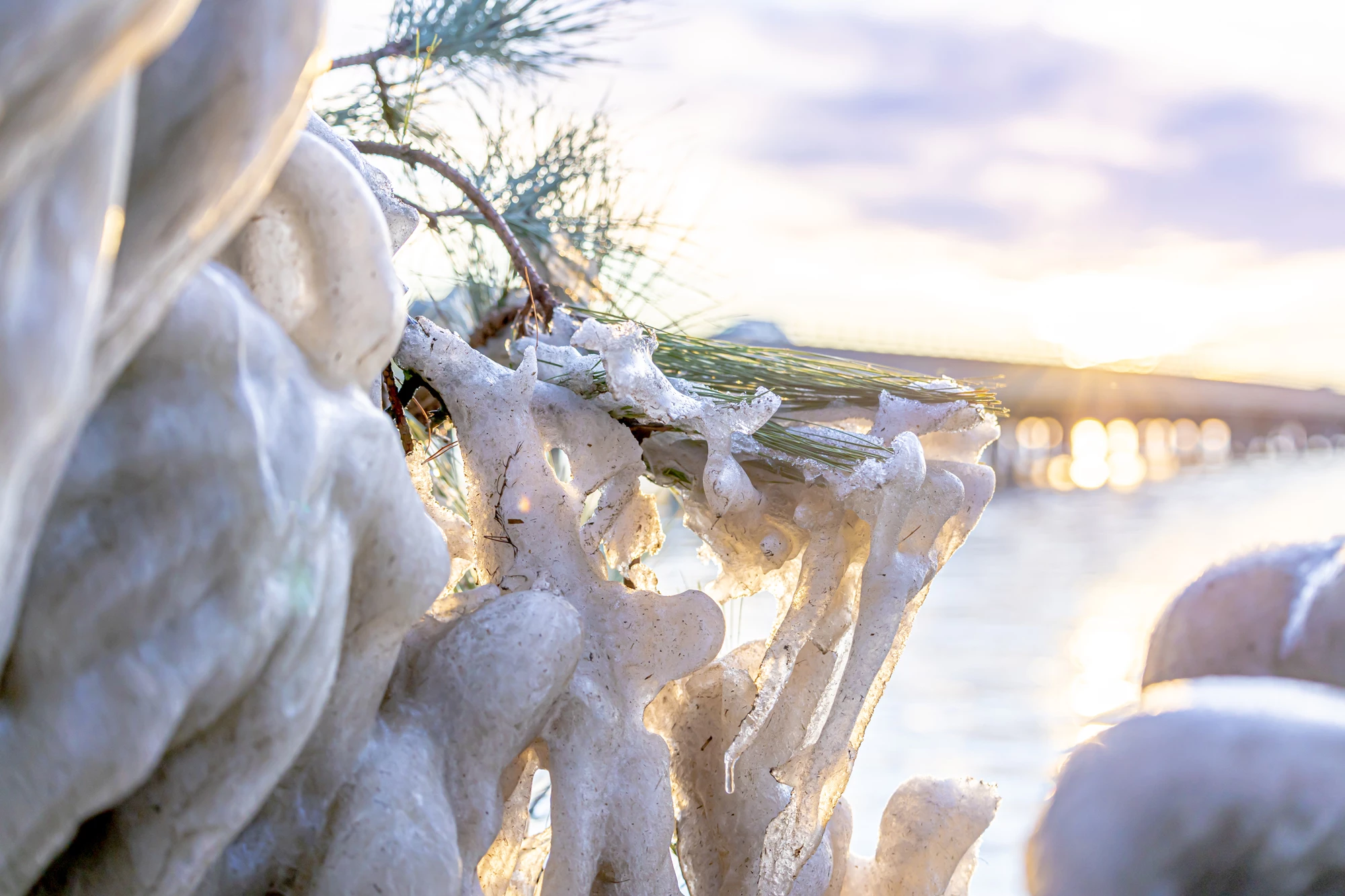 I guess I should have added in the post that this was all done on purpose. It isn't accidentally out of focus, it is zeroed in on the ice and the pine tree with the sunset over the bridge in the background being very out of focus. Also, the original file wouldn't upload because it was too big, so in order to get this post submitted I had to decrease the file size.