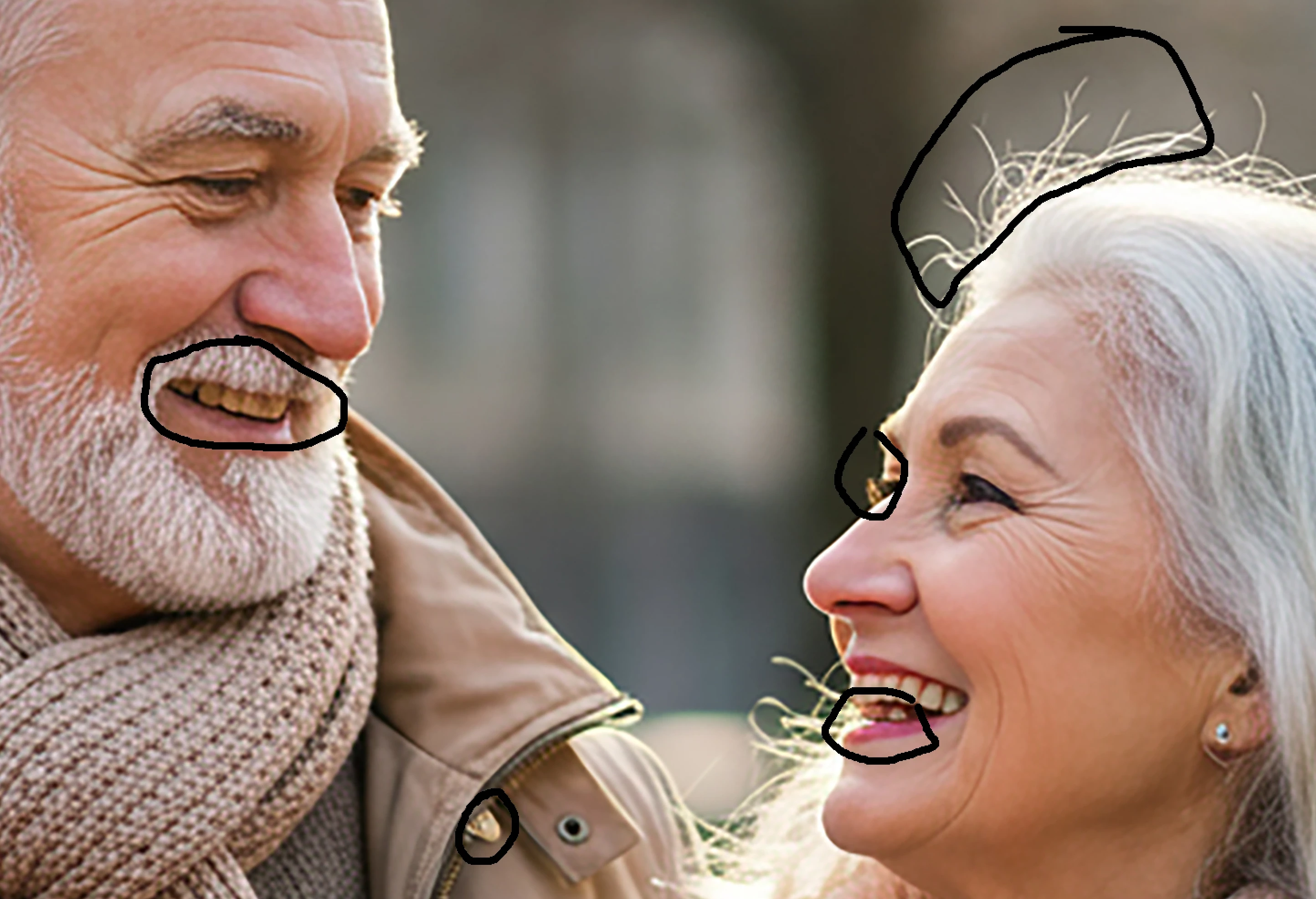 In my opinion, they need to be toned down at the very least. People naturally have loose hairs, but these are a little excessive. Especially the older couple, whose loose hairs are extremely thick. Also, I did not necessarily point out every issue. Moderators only need one reason to reject an image.
