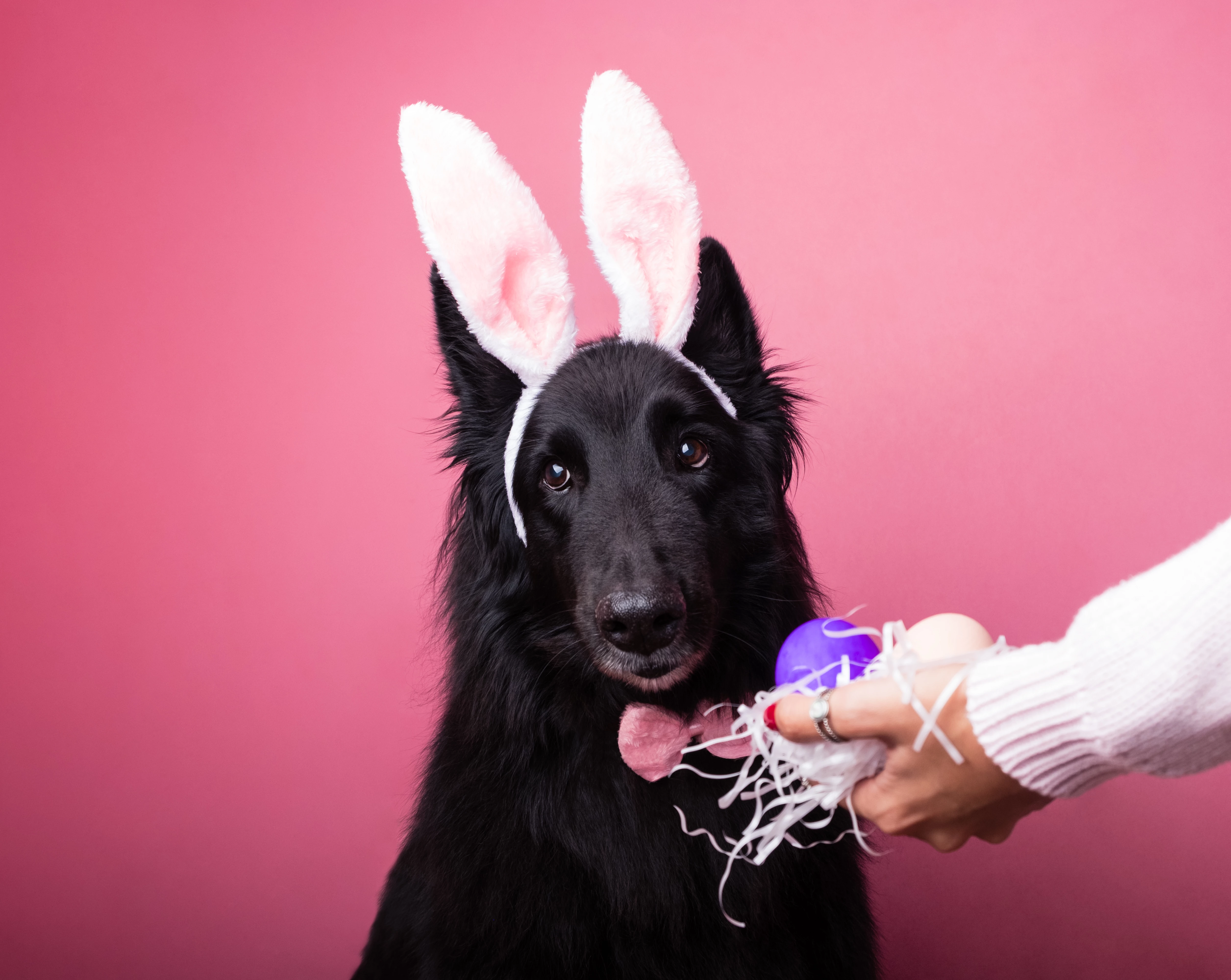 Focus, exposure, lighting, and background choice could be better; it doesn't match the dog!