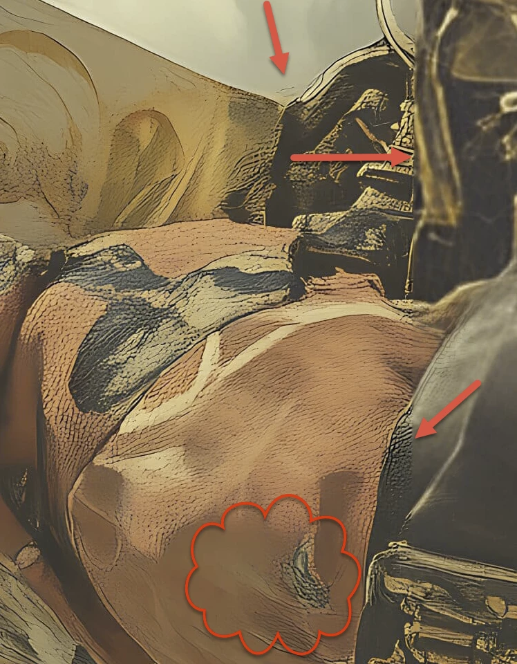 This looks like an unfinished work of the generative AI image algorithm. If you know that all those programs tend to split the asset into small squares to have an easier job, I would say that someone just interrupted the generator in the middle of its creative phase. Seeing the result of the high contrast parts, it looks to me, that the “inspiration” comes from comic books.