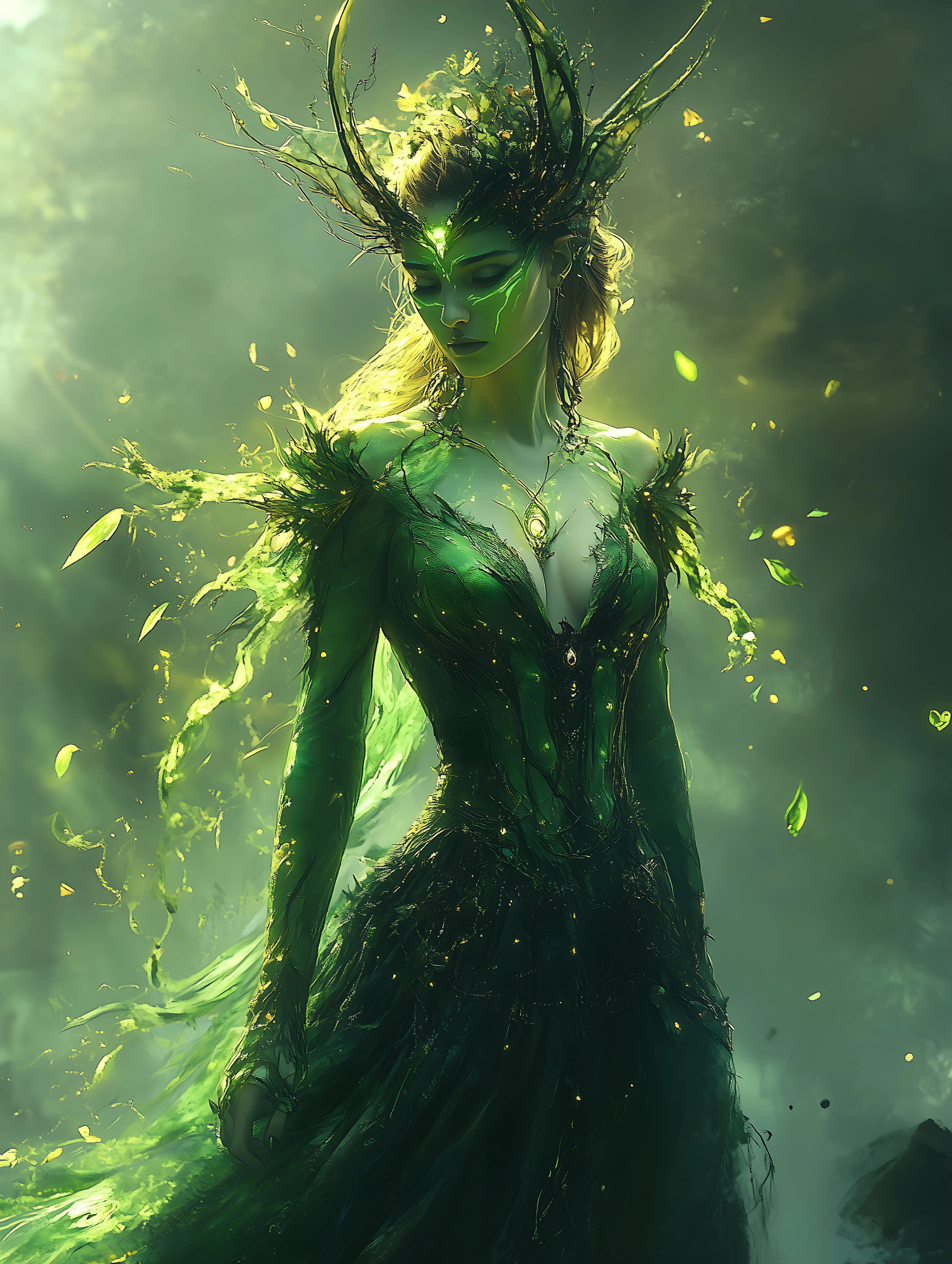 With your green woman, you could argue that this is a kind of oil painting, but as such, there are too many inconsistencies:
