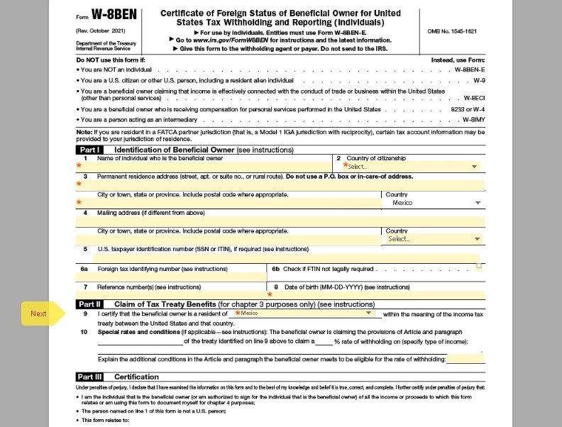 necesito ayuda con el formulario w-8ben