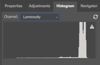 3. Histogram shows too many highlights and no shadows or midtones.