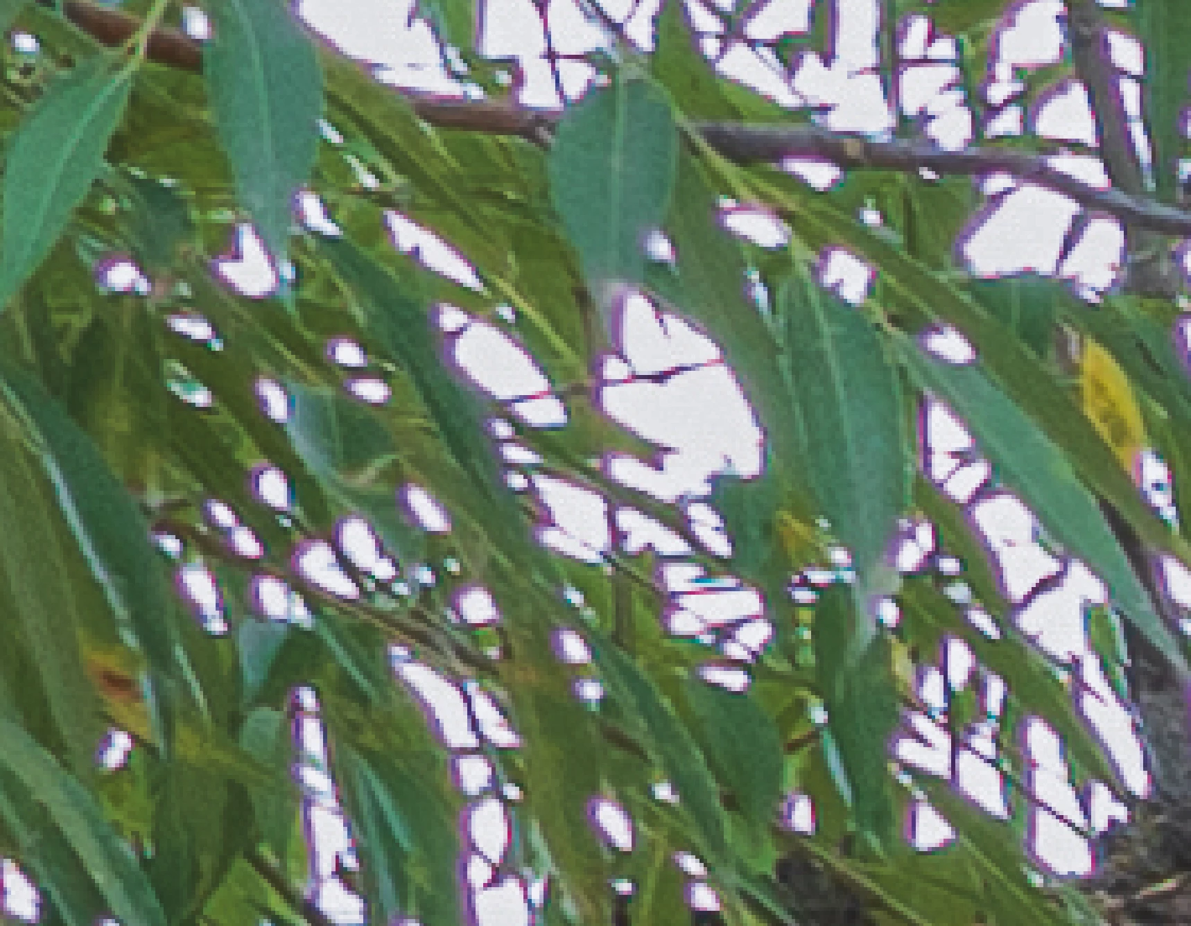 There is chromatic aberration in the sky, which you can easily remove with Camera Raw or Lightroom. You could also drag the white slider in the basic settings all the way to the left. As a result, no details appear in the sky, but technically it would be okay.