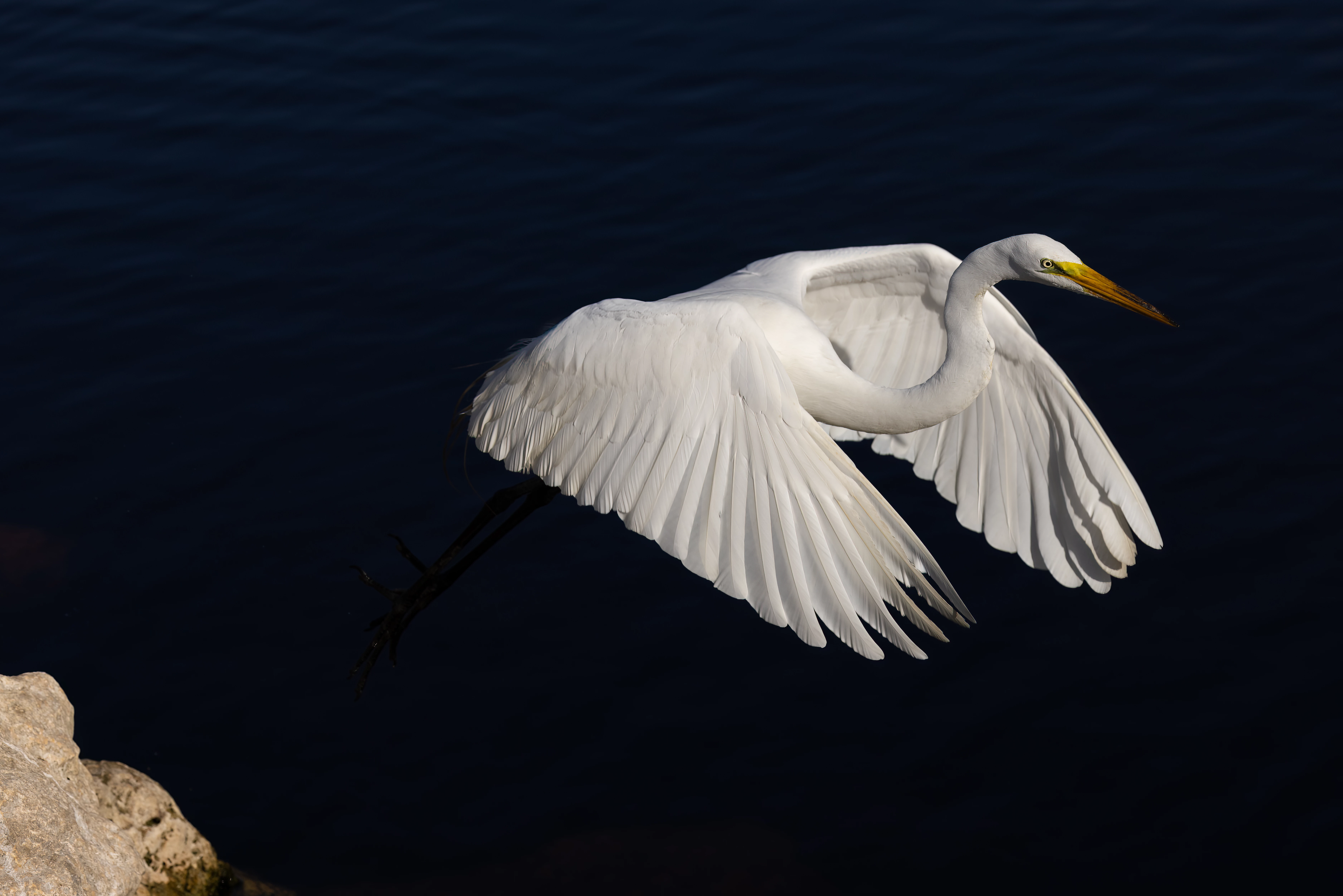 I think for your egret, you have darkened the river way too much. It's 'hanging' in mid-air. You should also show the legs. The egret needs some context. - as over a river. The way you have shown it, there isn't any context at all!