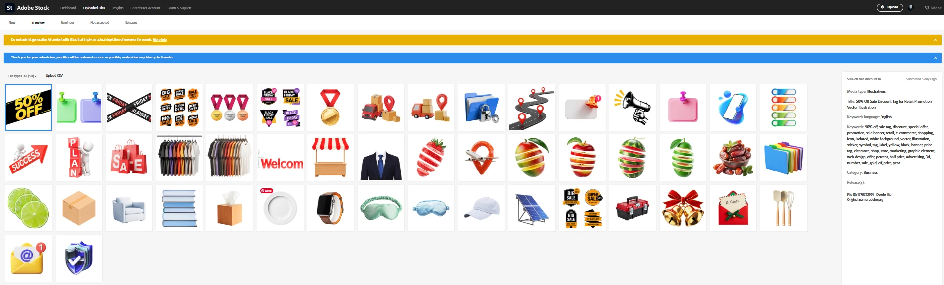 Every week, Adobe Stock reviews my files, approves them, and rejects them all. However, this week, 15–20 of my files were rejected, and the remaining 50 were not reviewed.