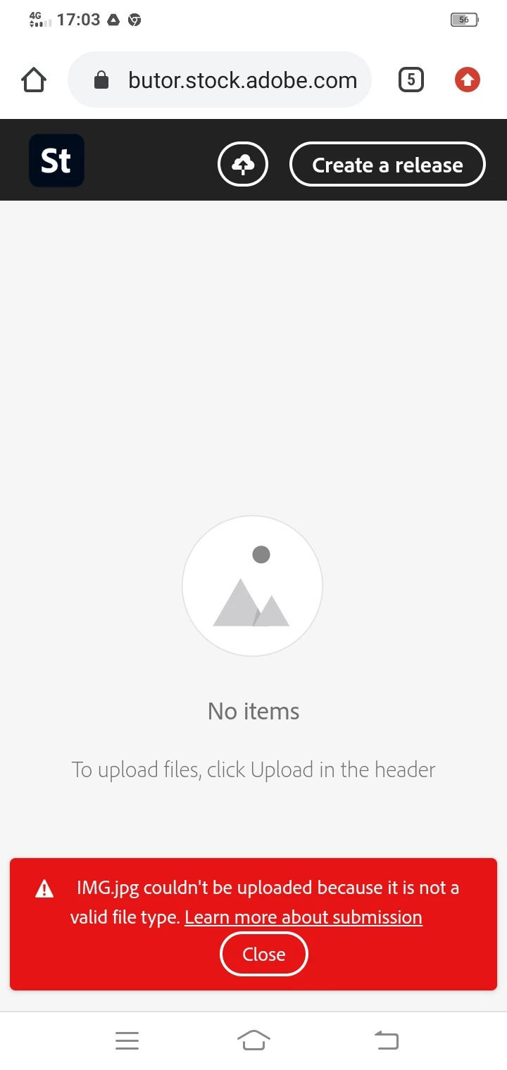Are you attempting to upload images directly from your phone? Read the file submission requirements from your Contributor User Guide. At a minimum, you should retouch images in Lightroom or Photoshop and save in sRGB color mode.