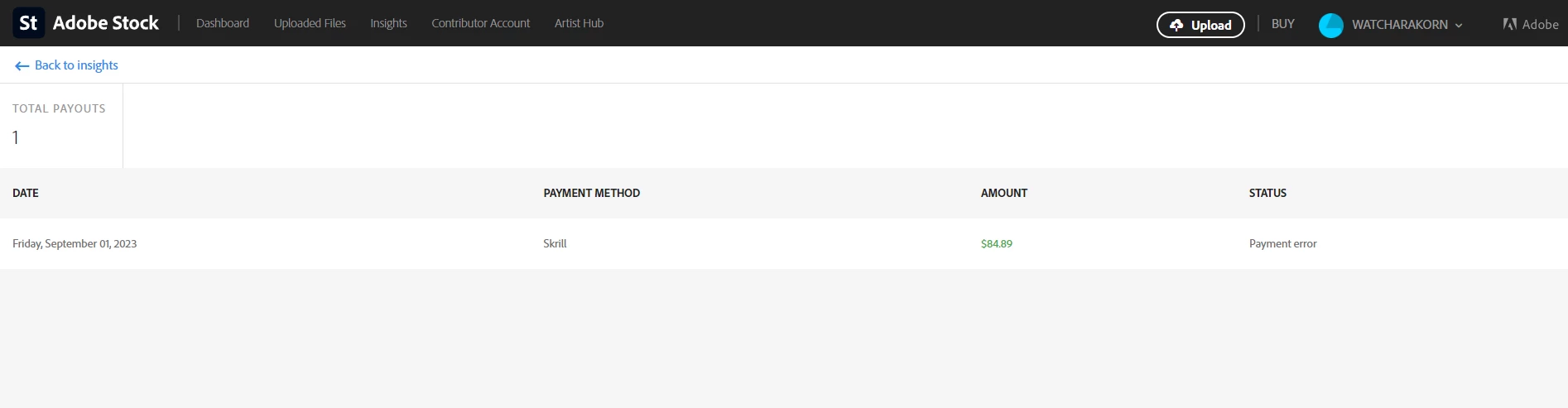 I am new Adobestock Contributor. I withdraw last Friday, September 01, 2023. But yesterday I got a payment error. Help me to check and how to reslove it, please.