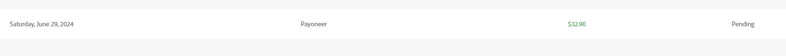 Hello, My payout date is Saturday, June 29, 2024. And today is 10 July. I have a pending payment for Adobe stock, which is still not reflected in my payoneer account. what is the reason?