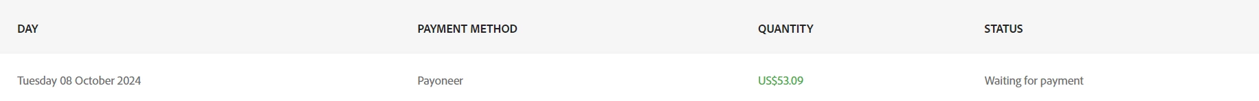 Hello, My payout date is Tuesday, October 8, 2024. And today is 19 October. i have a pending payment for adobe stock and it is still not reflected in my payoneer account. what the reason.