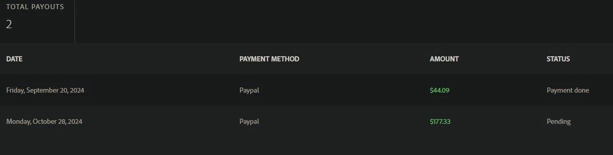 Hello, I made my second payout on 28 October 2024, and to this day it is still pending, is there something wrong or has Adobe policy changed regarding payments??