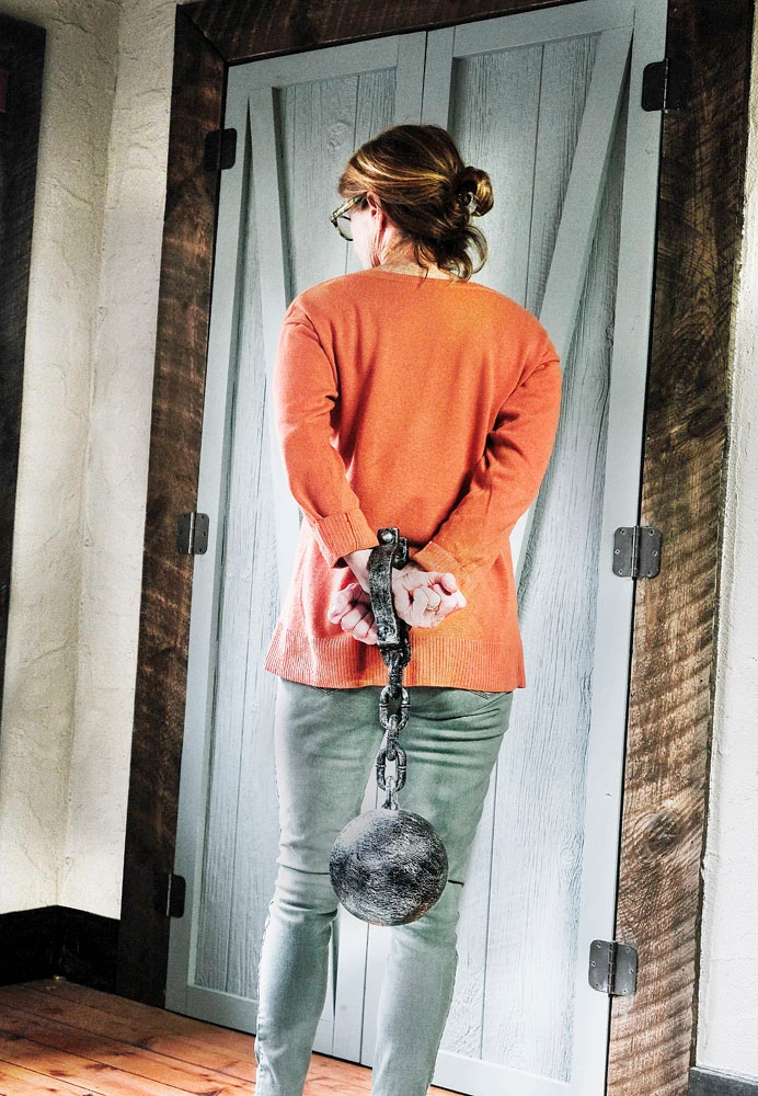 "The woman with ball & chain…it’s a concept picture with women being under the thumb of men…abortion rights, many areas."