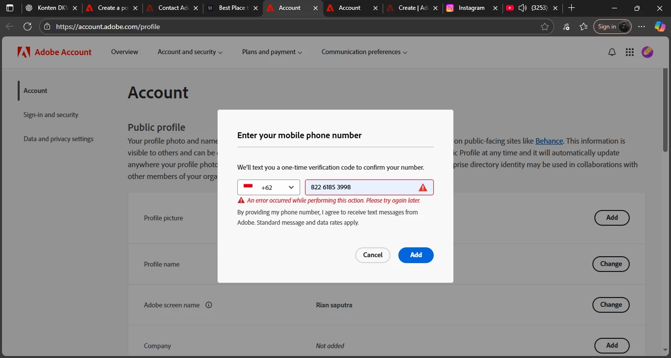 Problem with Phone Number Verification in Adobe Stock Contributor Account