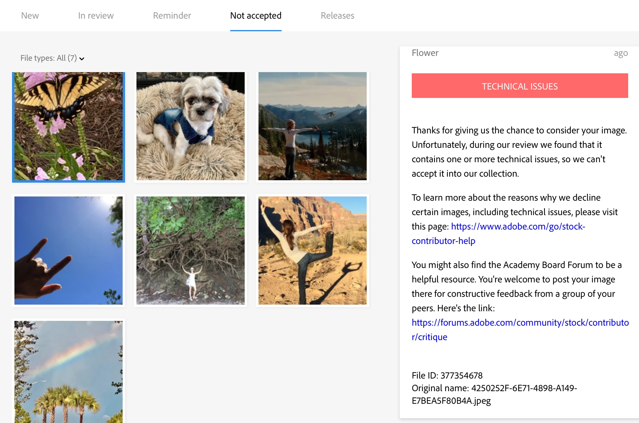 and especially quality and technical issues: https://helpx.adobe.com/stock/contributor/help/quality-and-technical-issues.html
