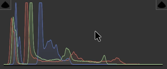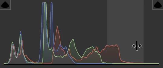 This is the histogram from Rejected1: You see that the whites are missing. Furthermore, because you did not use the whole range, contrast is missing.