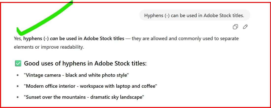 Please give me the correct information, just tell me if - hyphens can be used in the title . { Example title: Elegant Ornate Frames - Vector Templates for Branding}