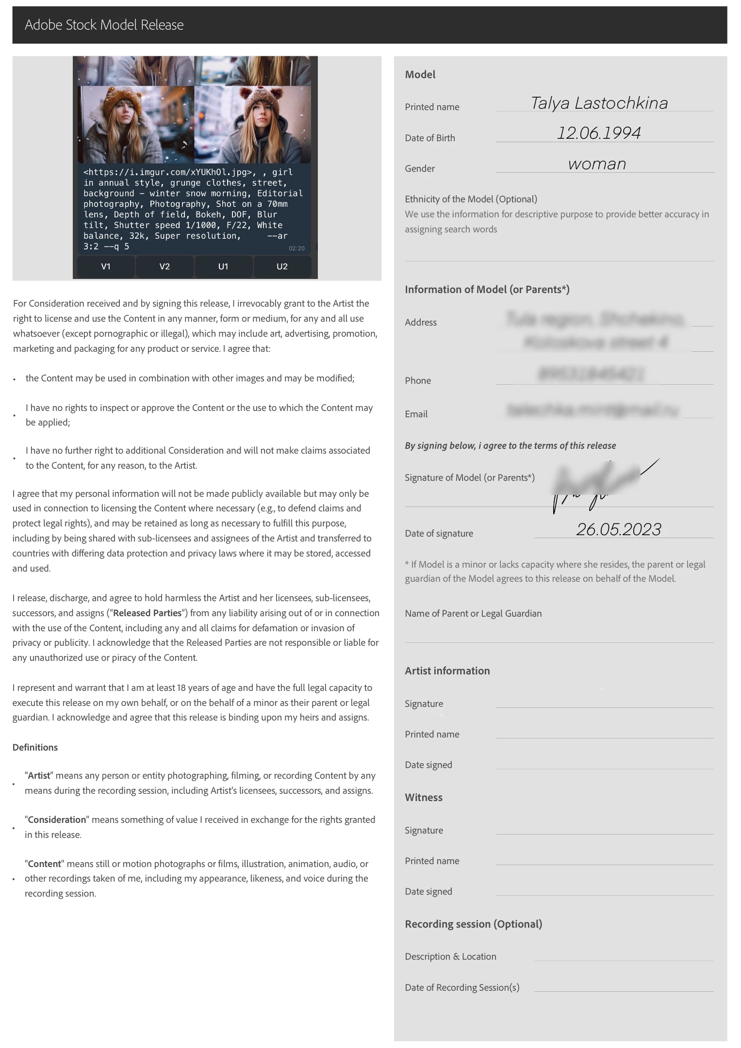 Hi all! I have a fairly common problem as far as I can tell. but I still couldn't figure it out. everyone throws off links and stuff, how to make a release for an ai picture, but for some reason it didn’t help me ... I just want clarity. can someone just upload a photo of this release?👀 I just need a photo of this document, which will pass the selection. I want to see exactly where and what people write. You can choose a picture with fictitious data. the main thing is what it looks like. I will be very grateful to you! Very❤️ just throw someone a screenshot of this release for Ai, as an example🙏🙏🙏😭