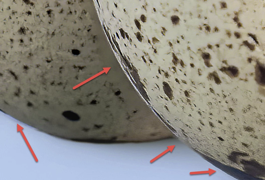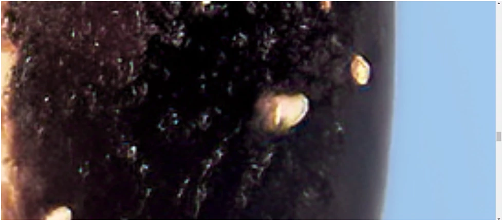 The first file has color noise. The colors are not smooth. And also I believe along with the shallow depth that your camera is set at, you also went in too close.
