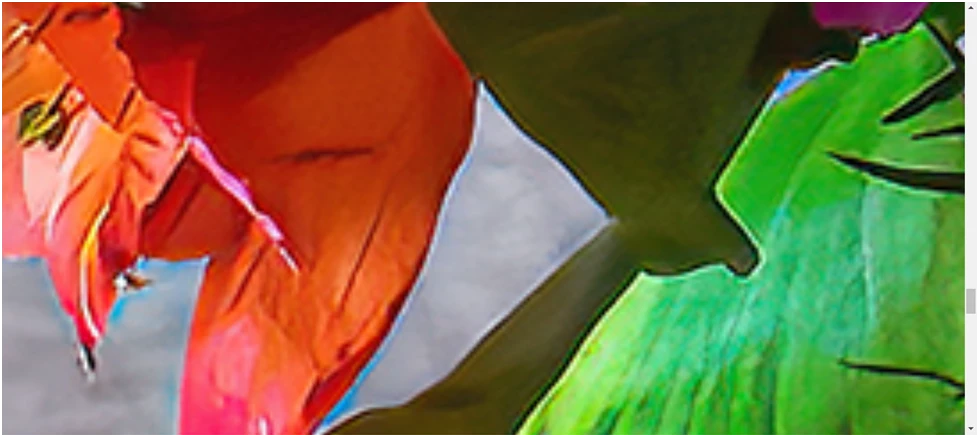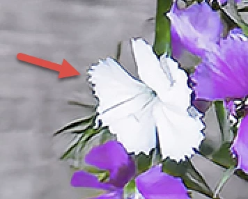 The edge of the flowers is not smooth and is with a halo. Also there is a blue cast, meaning it has a white balance issue.