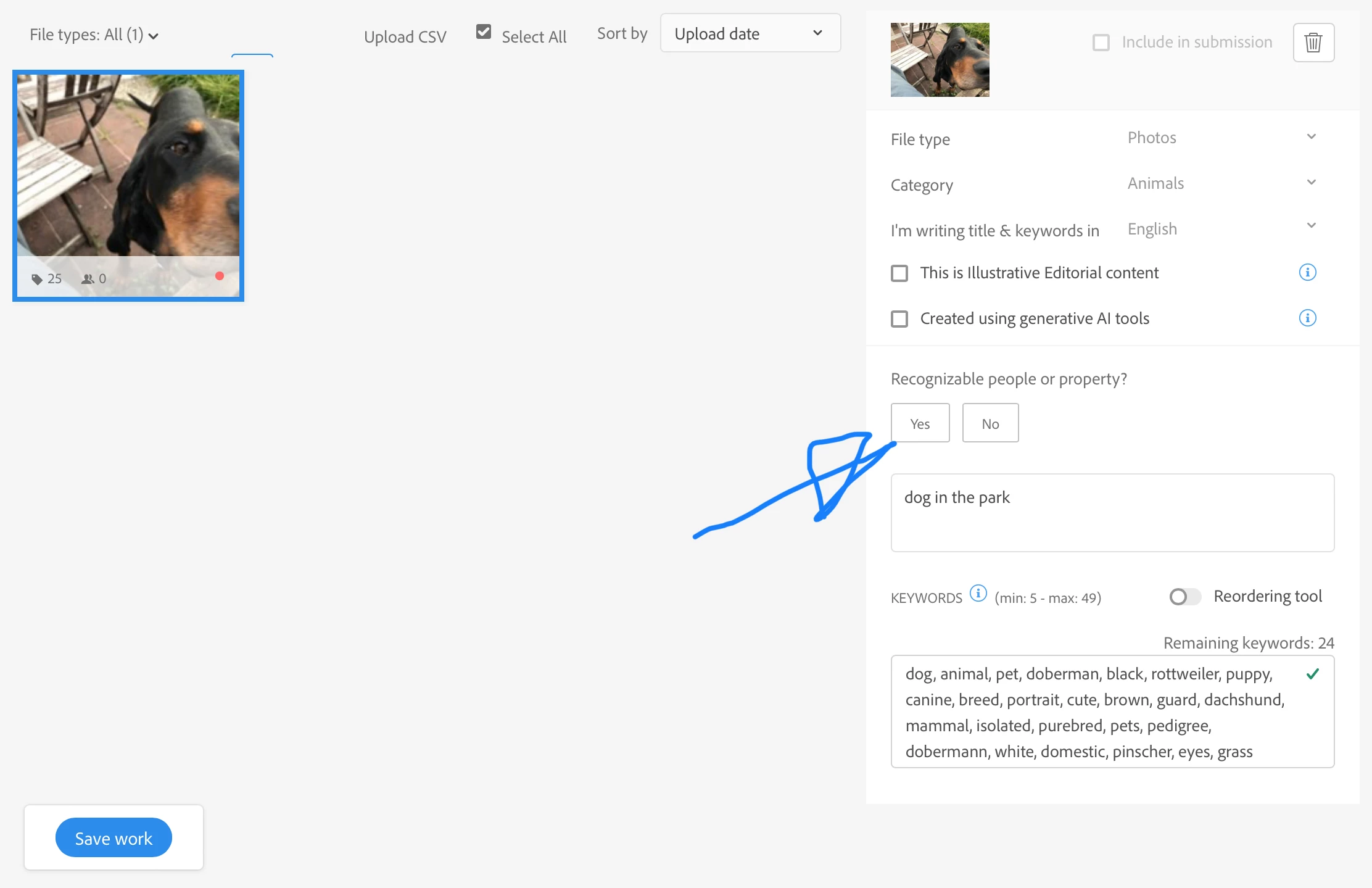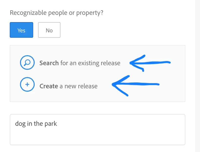 You can add more than one release, if required, and you may add model and property releases if needed.