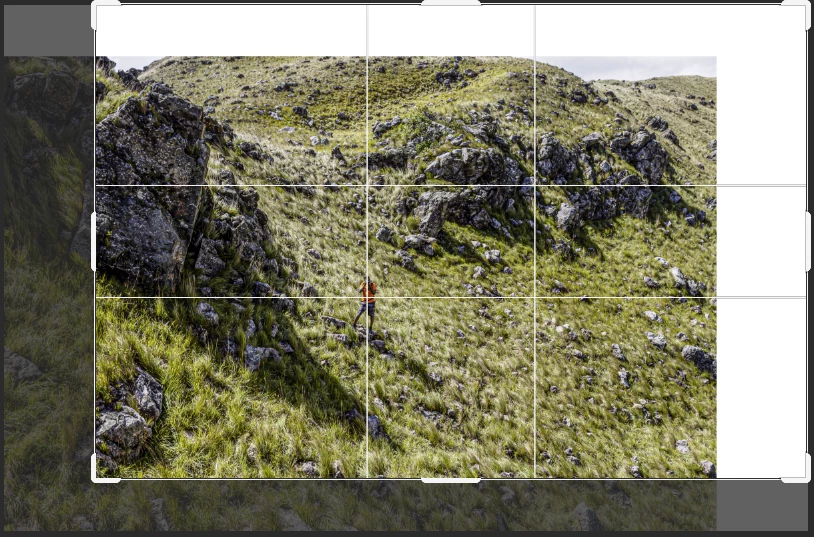 Composition: When taking the picture, it would have been better to frame the picture differently, to bring in more sky and get the photographer more on the golden ratio (you could even add more sky, getting the photographer a tick lower):