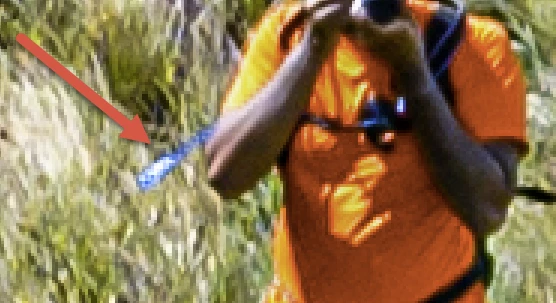 The biggest problem, however, is a strange artefact around the photographer's arm (here seen at 300%):