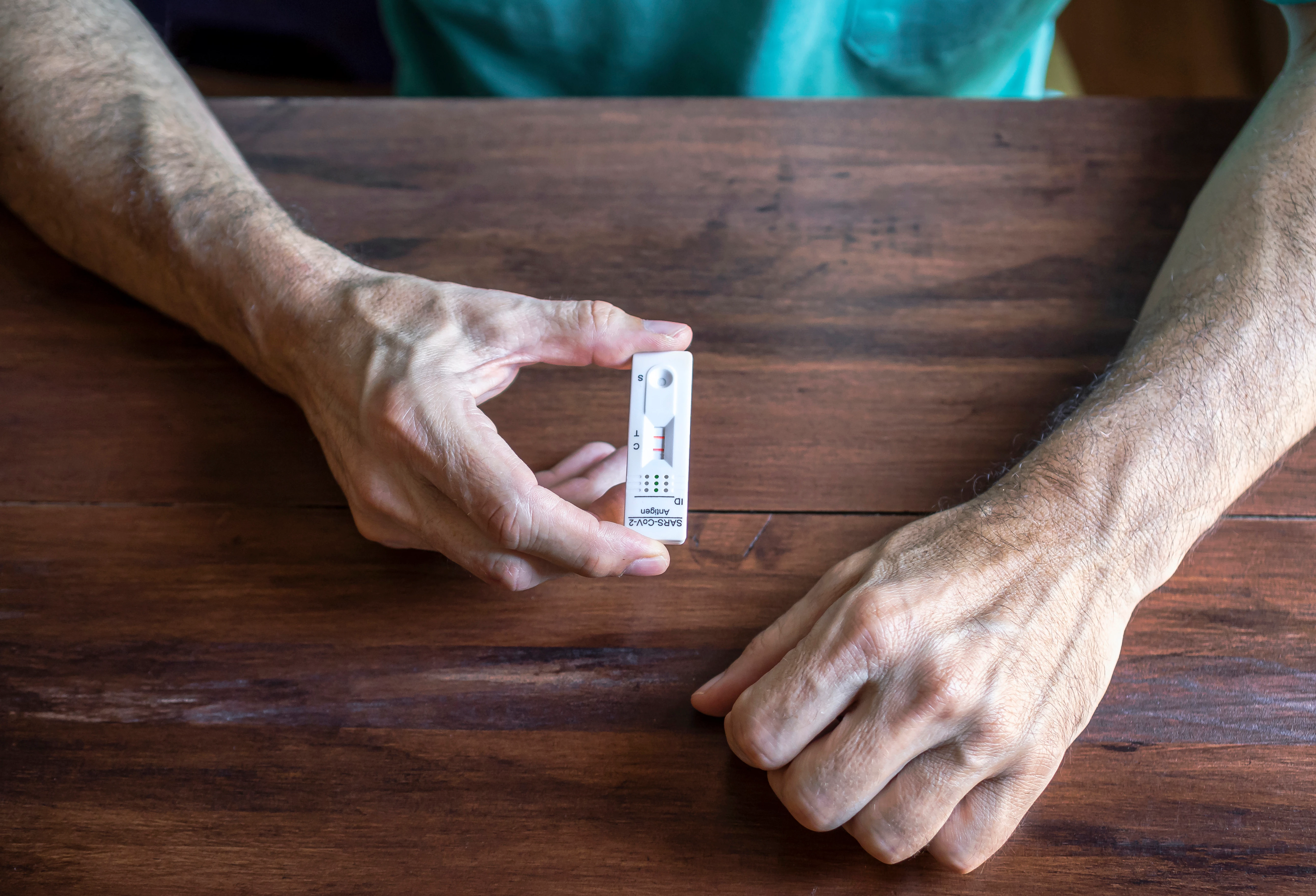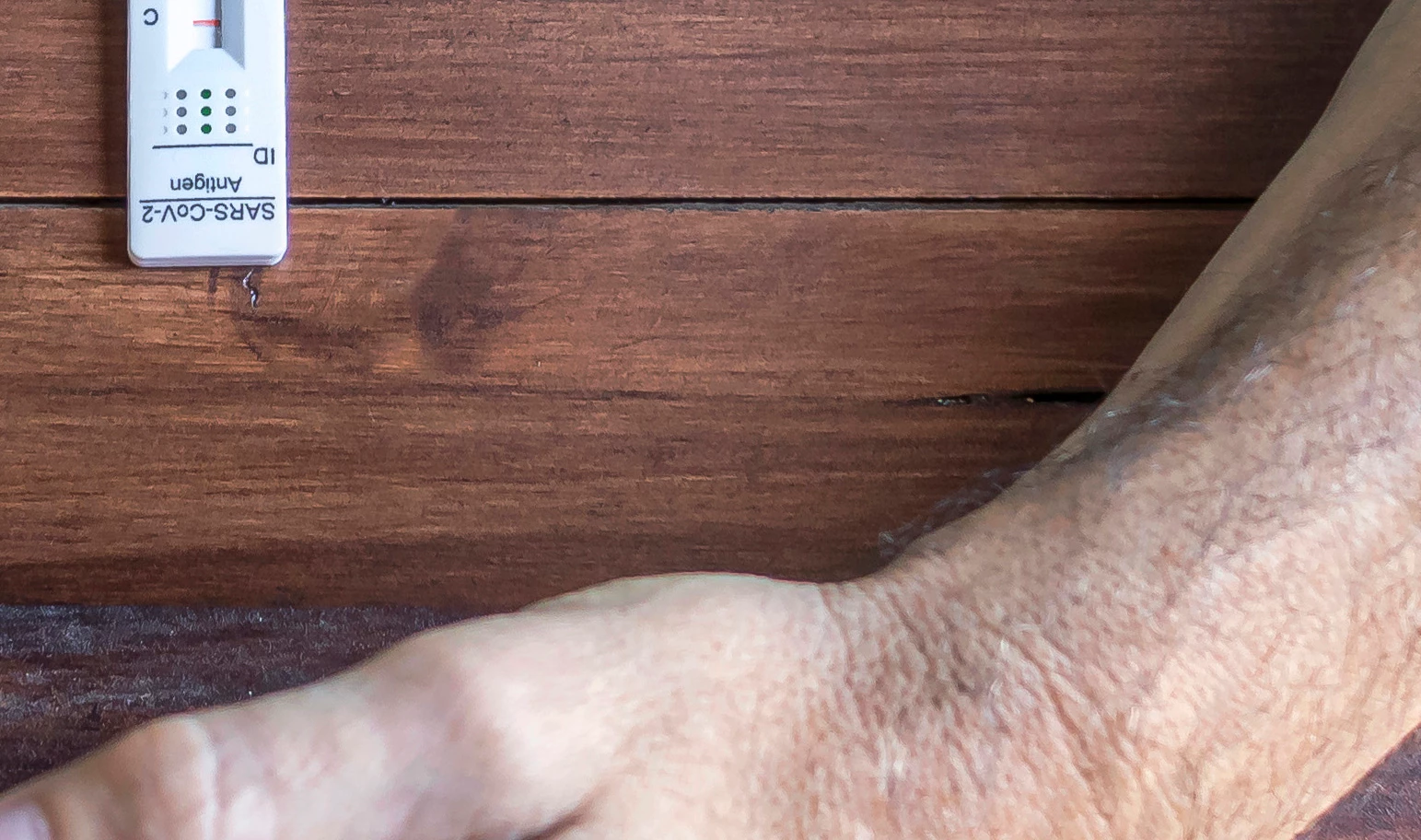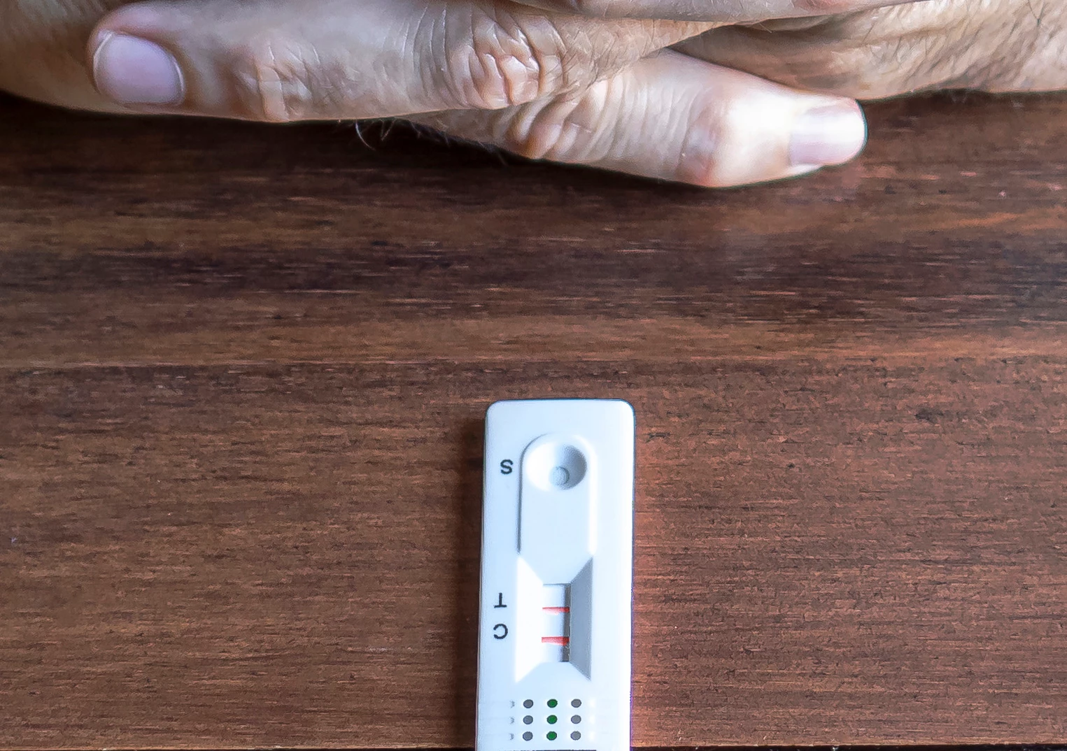 The antigen test text is not in sharp focus, there is lots of noise on it and purple and blue fringing along the top and side. Looking at your model's hands, similar issues of artifacts and colour fringing.